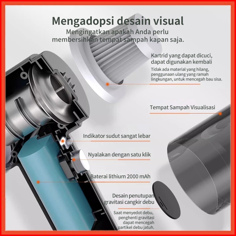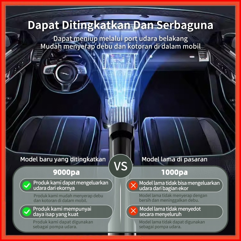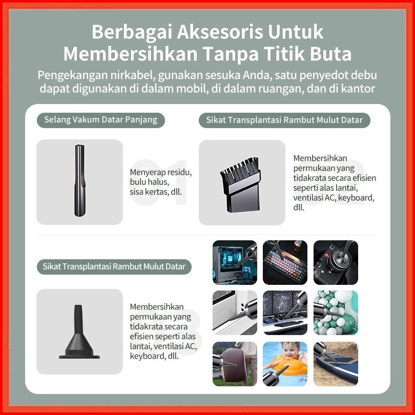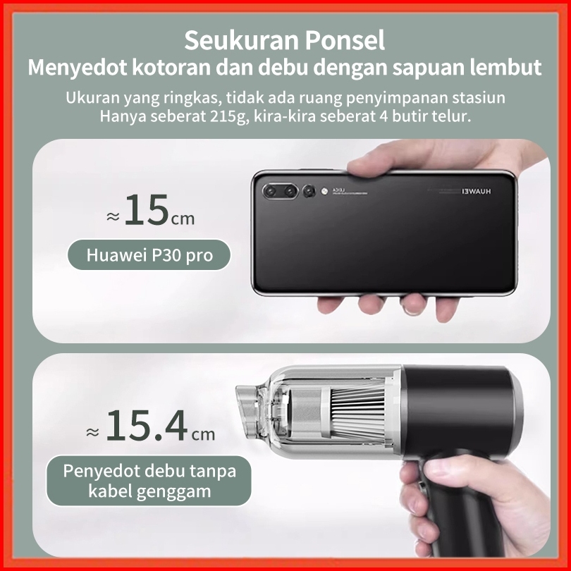 Hoptech - Vacuum Cleaner Wireless Portable 12000pa 3-in-1 Penyedot Debu Serbaguna Mobil Rumah