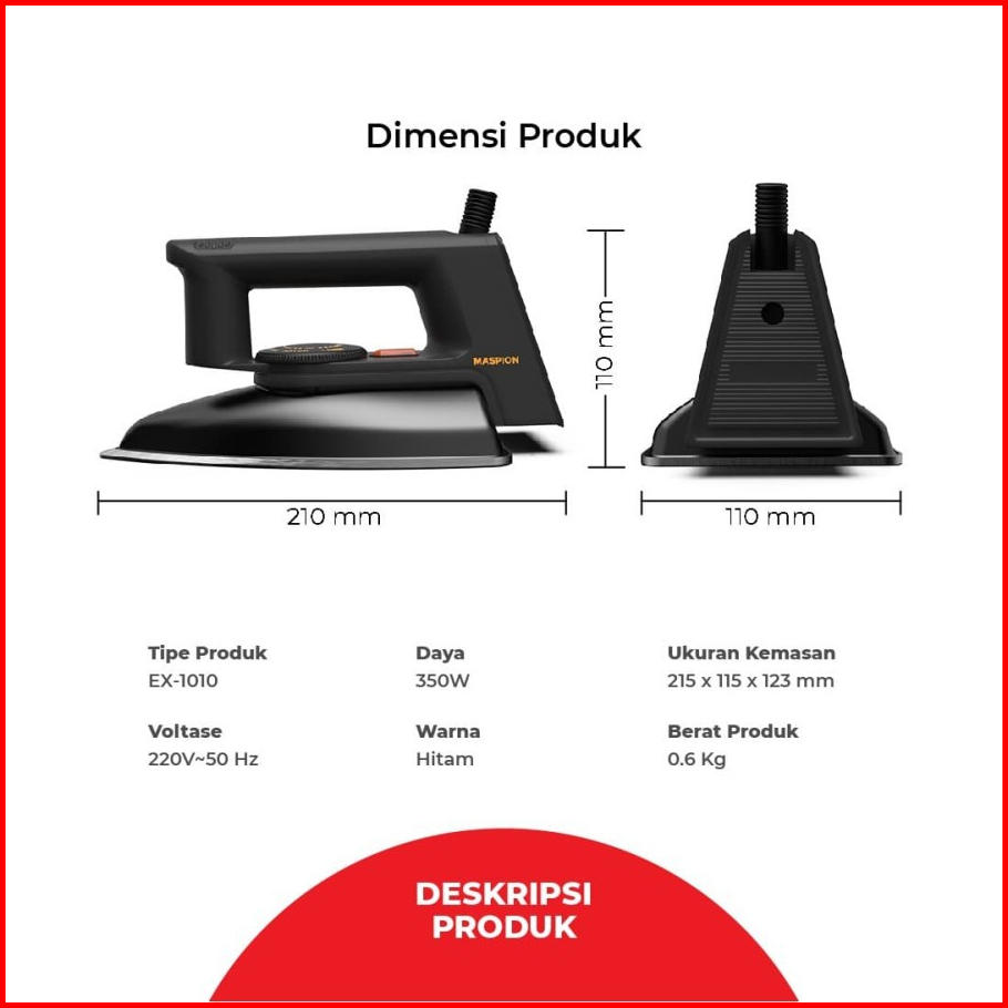 Maspion Setrika Listrik Ha-110 - Gosokan Baju Ha110 Ha 110 Dry Iron Garansi Asli Sni