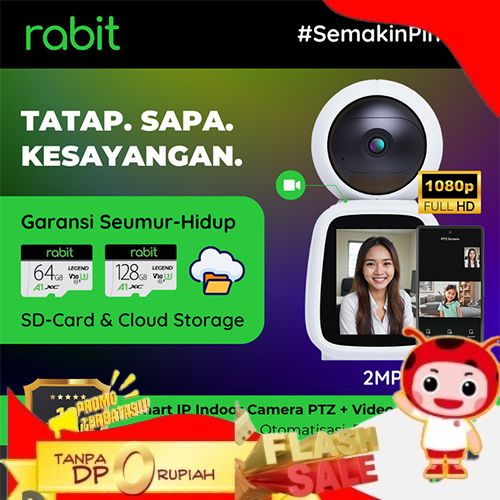 free ONGKIR- RABIT SMART IP CCTV WIFI CAMERA INDOOR PTZ SCREEN FULL HD 2 MP TWO WAY VIDEO CALL - 1 CCTV NO CARD