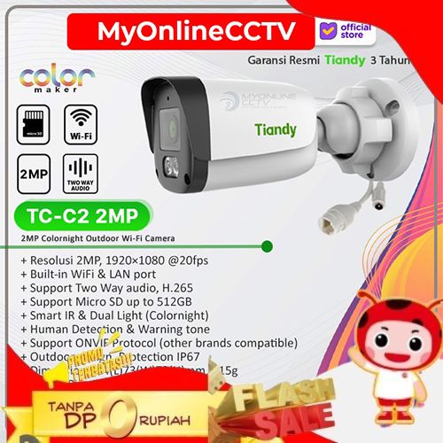 free ONGKIR- TIANDY TC-C2 2MP WIFI IP CAMERA CCTV COLORNIGHT TWO WAY AUDIO OUTDOOR ANTI AIR - ONLY