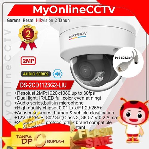 free ONGKIR- DS-2CD1123G2-LIU HIKVISION 2MP AUDIO IP CAMERA POE CCTV DUAL LIGHT - 2CD1123G2-LIU, LENSA 4MM