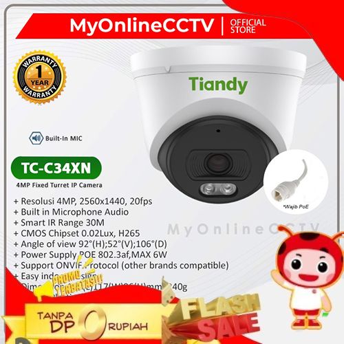 free ONGKIR- IMOU IPC-T42EA 4MP POE AUDIO IP CAMERA TURRET INDOOR PAKET CCTV DAHUA - TIANDY TC-C34XN