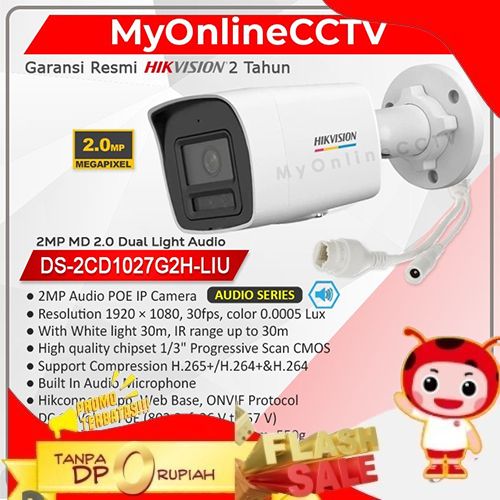 free ONGKIR- DS-2CD1027G0-L HIKVISION IP CAMERA POE CCTV OUTDOOR 2MP COLORVU RESMI - 2CD1027G2H-LIU, LENSA 2,8MM