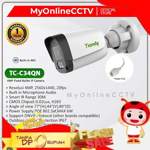 free ONGKIR- IMOU IPC-F42EA 4MP POE AUDIO IP CAMERA OUTDOOR PAKET CCTV DAHUA - TIANDY TC-C34QN
