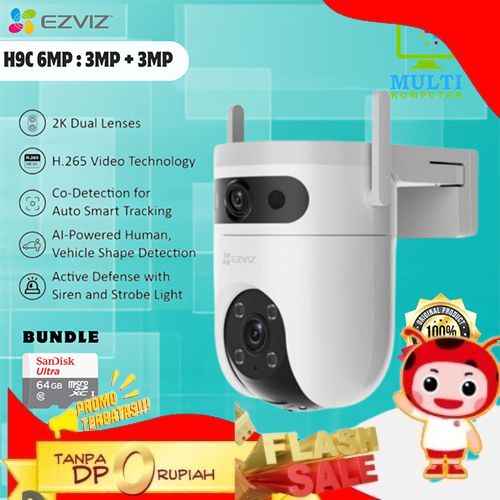 free ONGKIR- EZVIZ H9C DUAL-LENS 2K 3MP SMART HOME WIFI PAN TILT IP CAMERA CCTV OUTDOOR 1620P - H9C+64GB