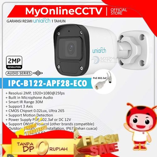 free ONGKIR- IPC-B122-APF28-ECO 2MP AUDIO ONVIF UNIARCH UNV IP CAMERA CCTV OUTDOOR - 2,8MM