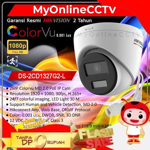 free ONGKIR- DS-2CD1327G2-L HIKVISION IP CAMERA POE CCTV INDOOR 2MP COLORVU RESMI - 2CD1327G2H-LIU