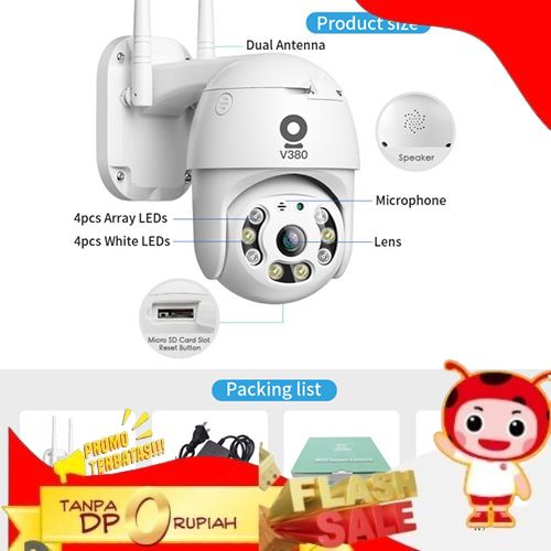free ONGKIR- V380 Y06 CCTV OUTDOOR WATERPROOF IP66 3MP 1080P HD GARANSI 2 TAHUN - CCTV V380