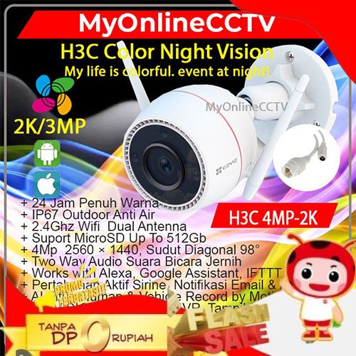 free ONGKIR- EZVIZ C3W PRO 4MP COLOR NIGHT IP CAM AI WIFI CCTV OUTDOOR 2WAY AUDIO - H3C 4MP, TANPA SDCARD