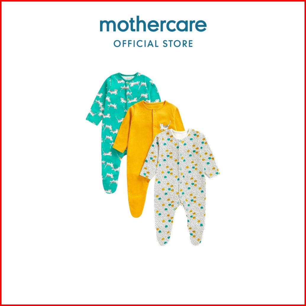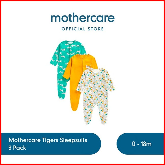 Mothercare Tigers Sleepsuits - 3 Pack - Set Pakaian Tidur Bayi Laki-laki Multi
