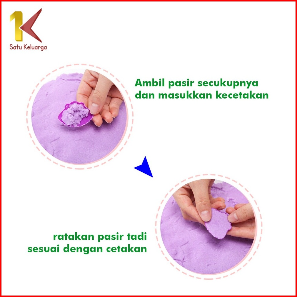 Satu Keluarga Mainan Pasir Ajaib Set M180 Magic Sand 1.5kg 3 Warna Sekop Cetakan Pasir Ajaib Box Container