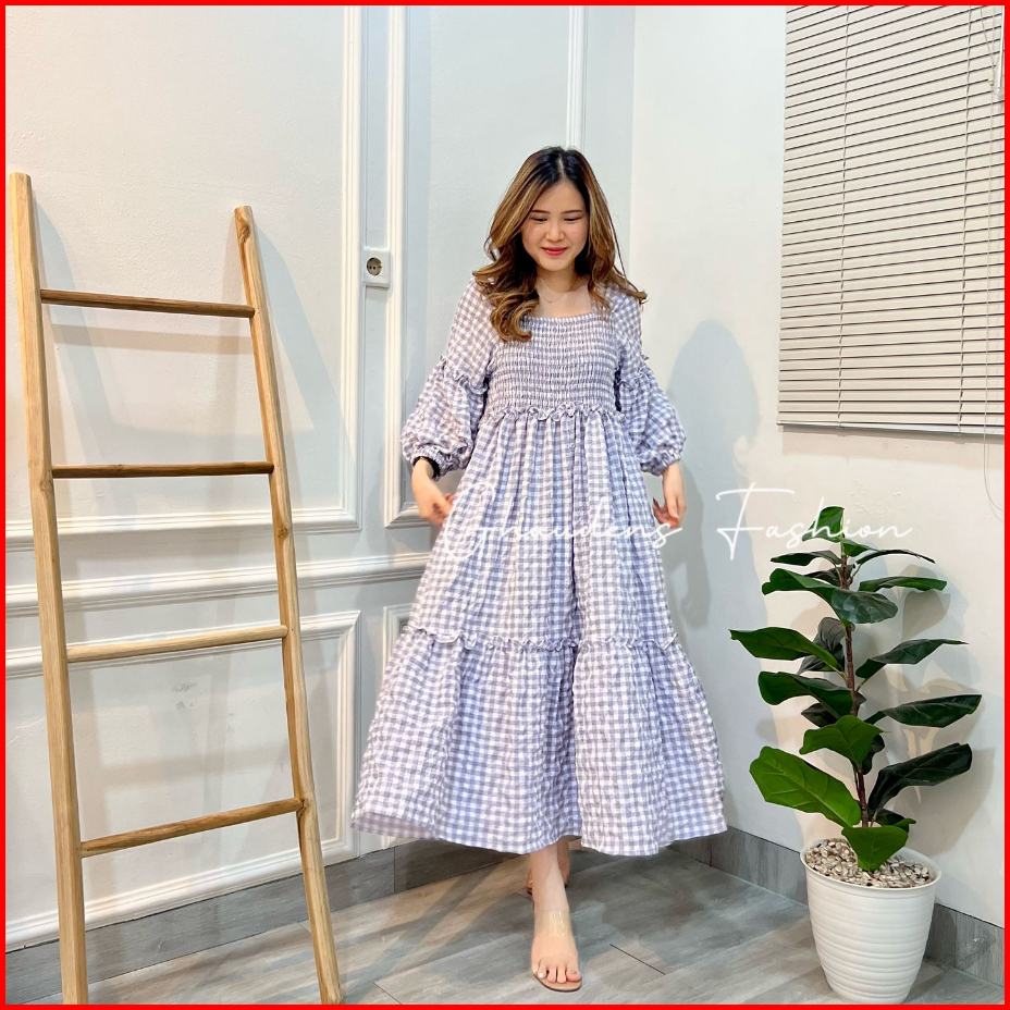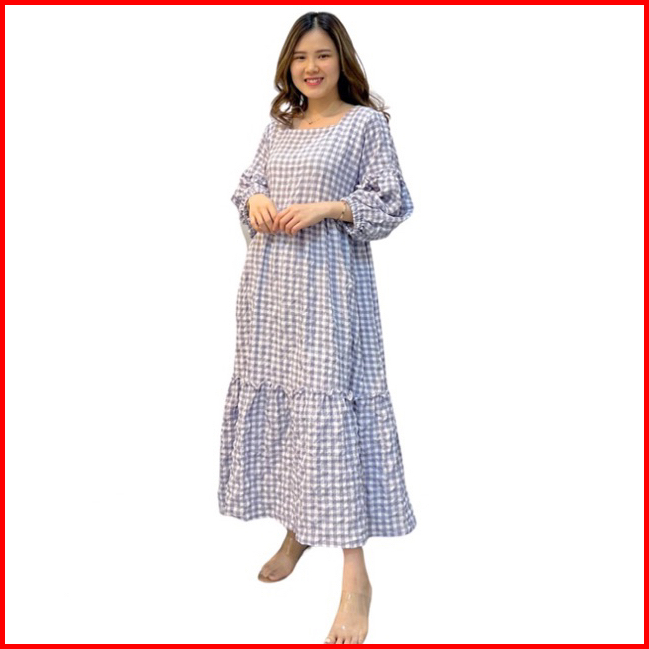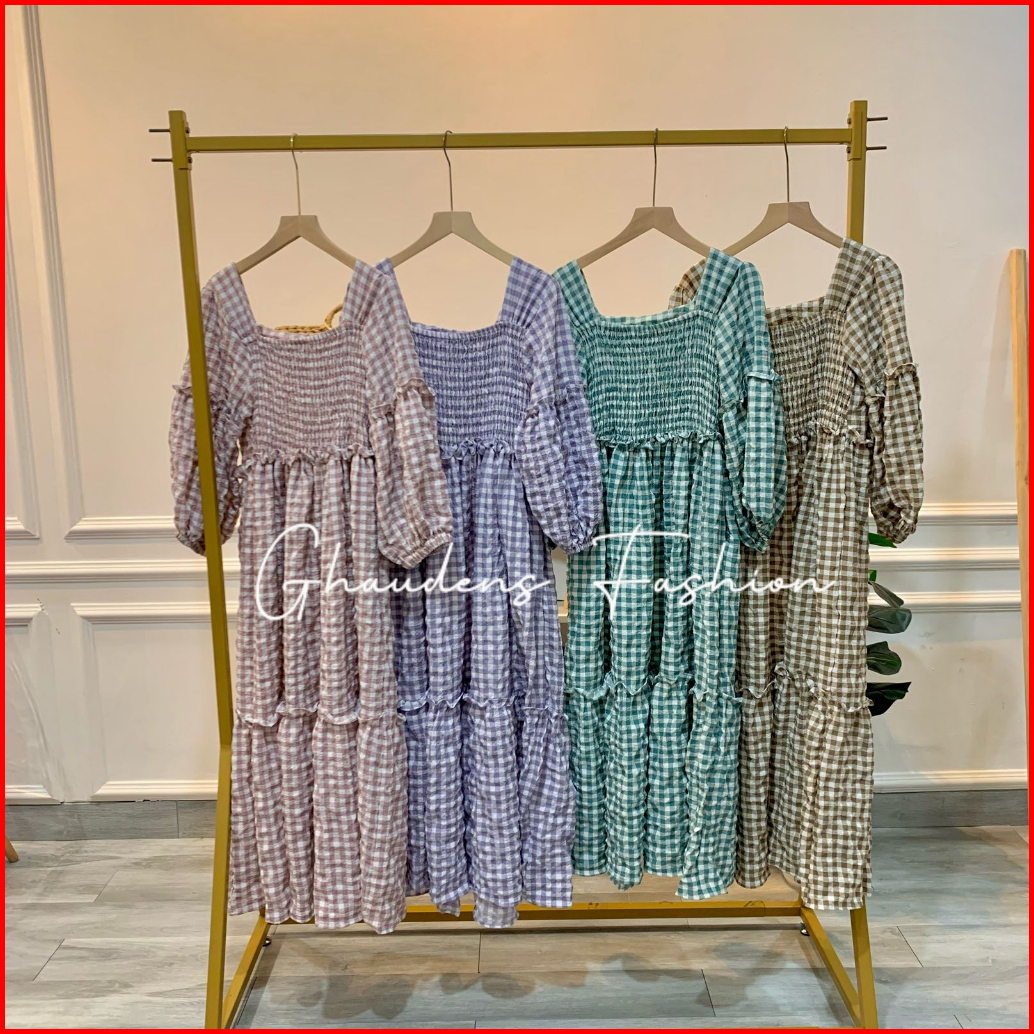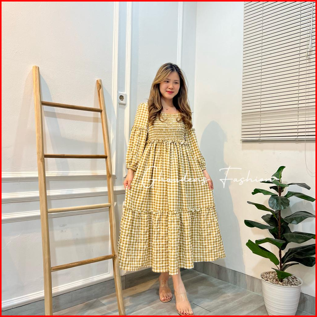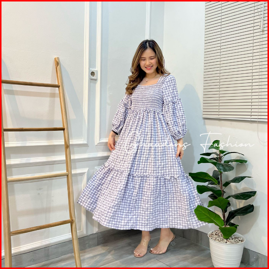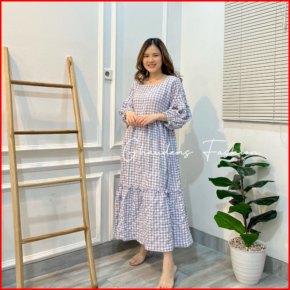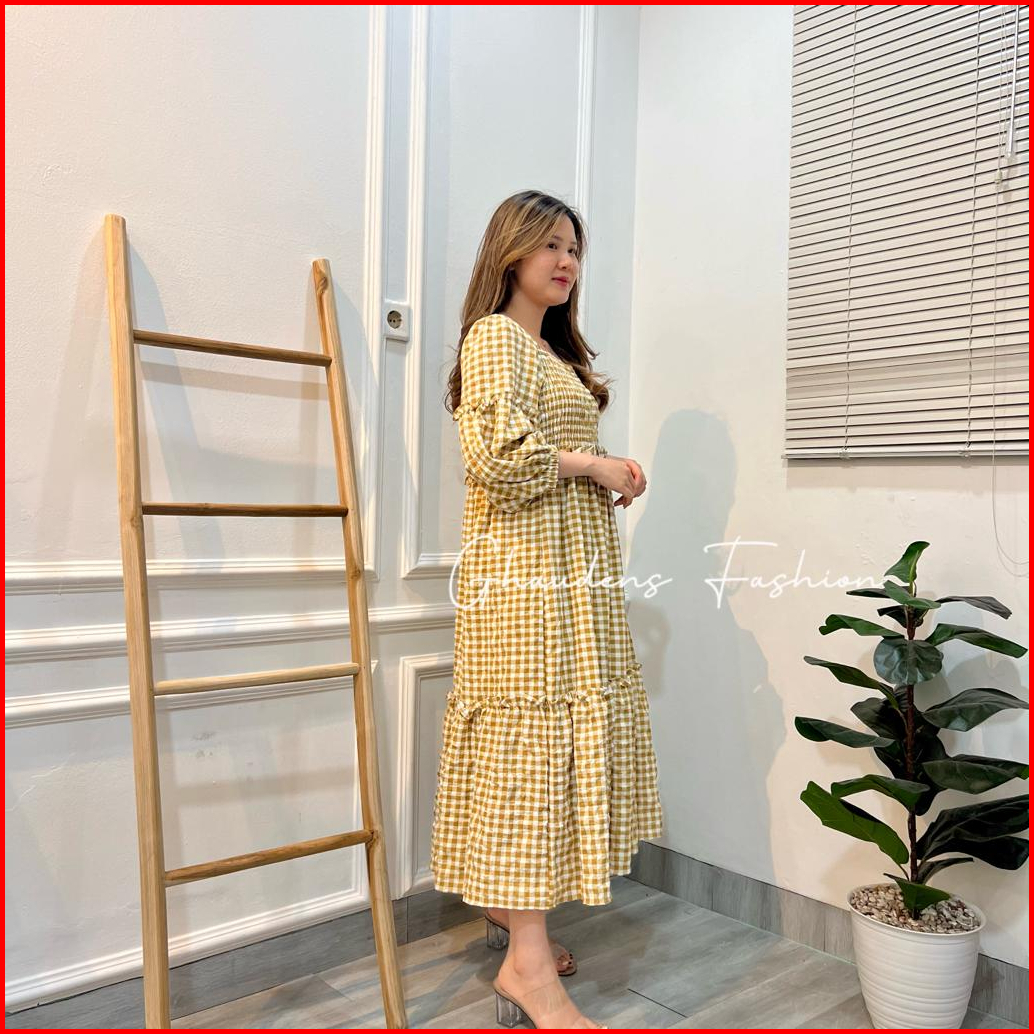Ghaudens - Long Dress Korean Gingham Crincle 3115-7