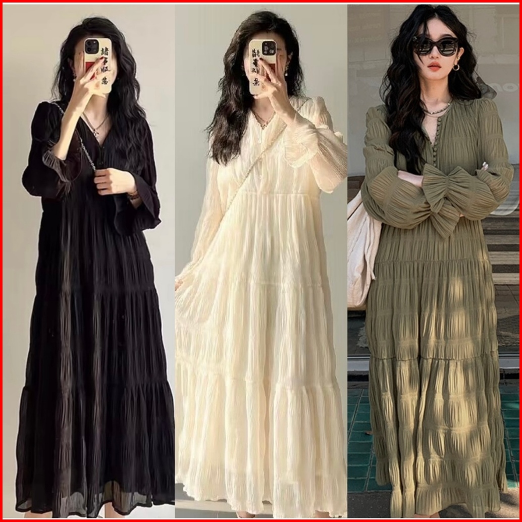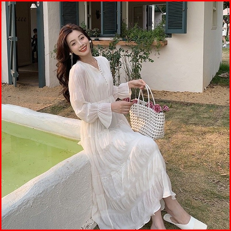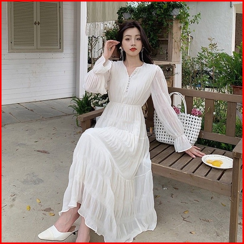 Susana Mall Dress Putih Panjang Sifon Casual Wanita Simple Korean M505