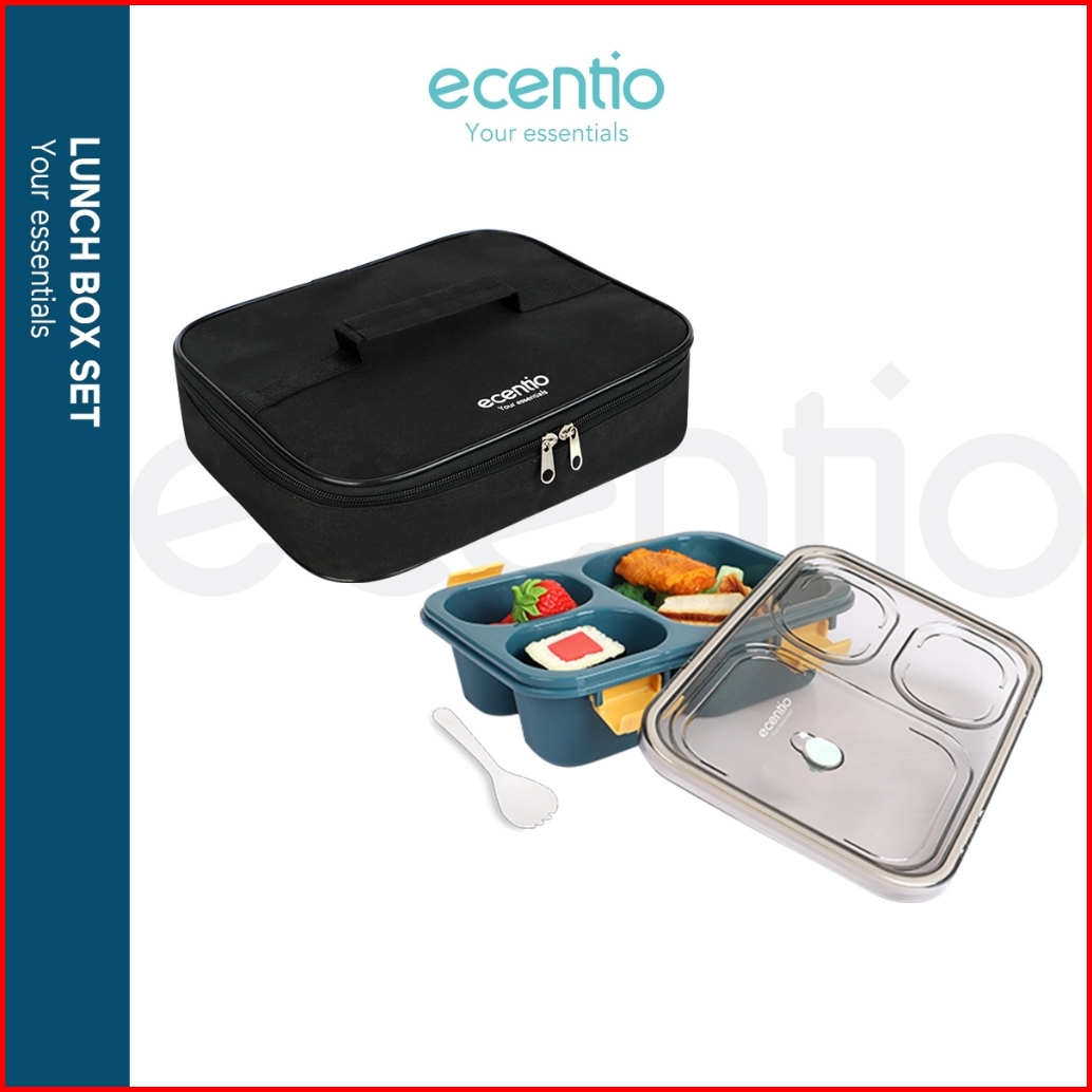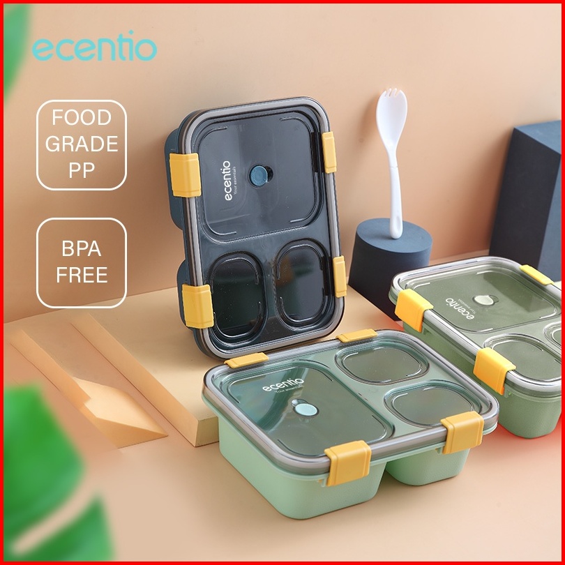 Ecentio Kotak Makan Anti Tumpah Lunch Box Set 850ml Anti Tumpah Kotak Makan 3 4 Grid