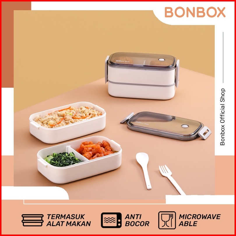 30k Bonbox Kotak Makan 2 Tingkat Lunch Box Susun Microwaveable Food Grade Material Plastik Dengan Alat Makan Btw40 Btw70