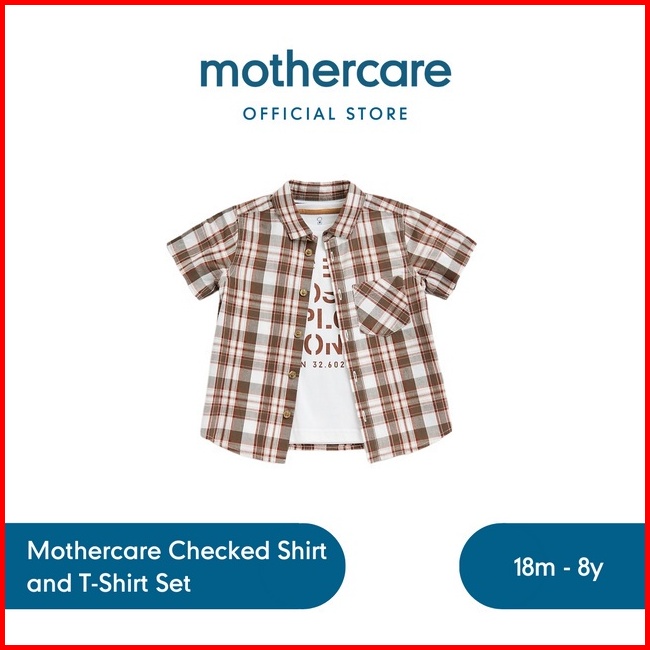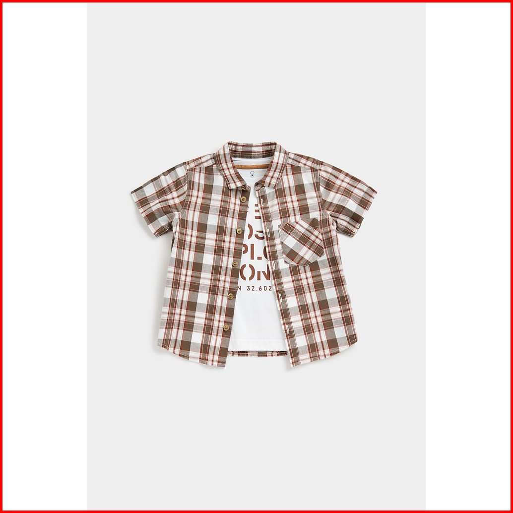 Mothercare Checked Shirt And T-shirt Set - Set Kaos Kemeja Anak Laki-laki Multicolor