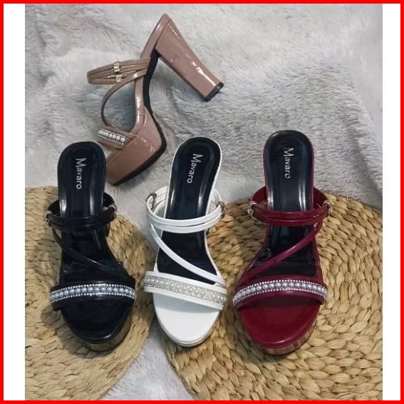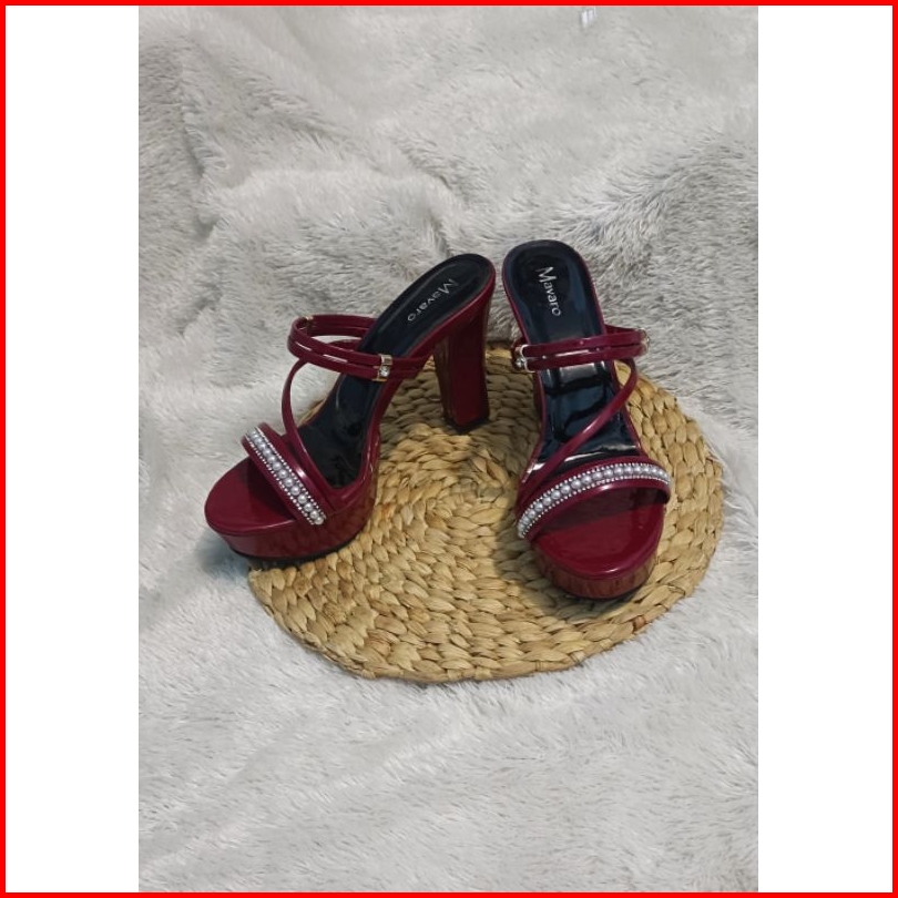 Sandal Hils Doublehak Mutiara Tinggi 10cm Kode Aks-006