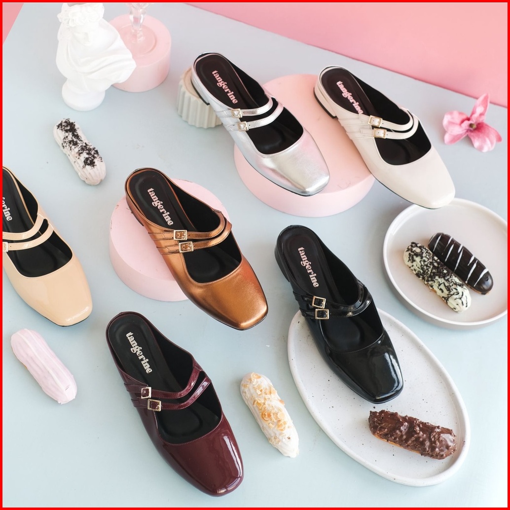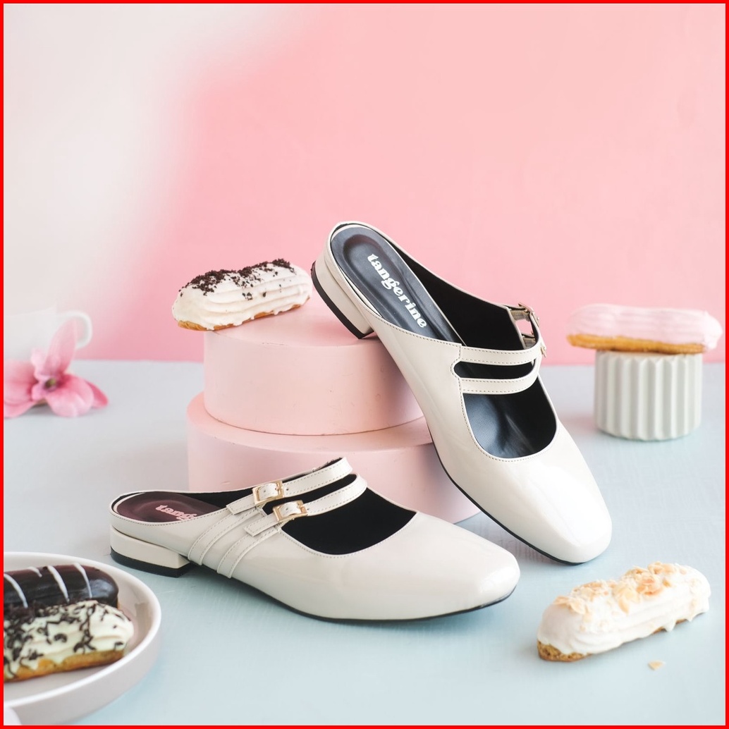Eclair Flats Tangerine March Maryjane Slip On Sandals Covered Mules Teplek Daily Comfy Casual