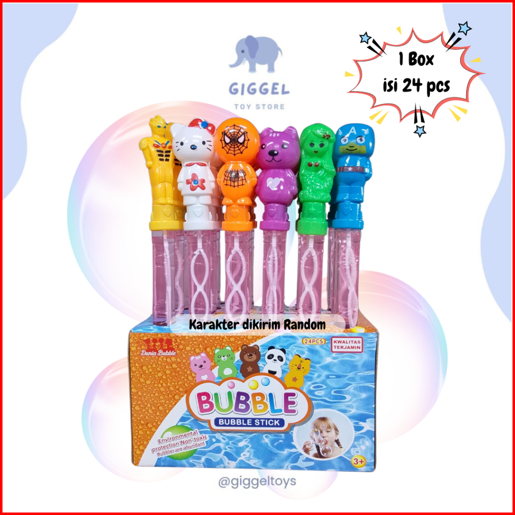 Giggeltoys 1 Box Isi 24 Pcs Stick Bubble Karakter Stik Gelembung Sabun Tiup Balon