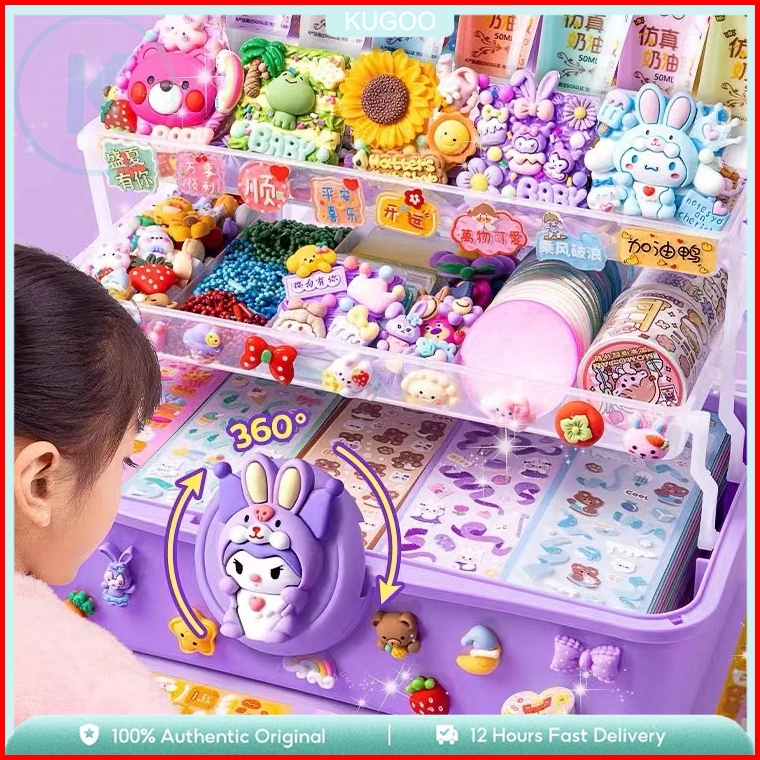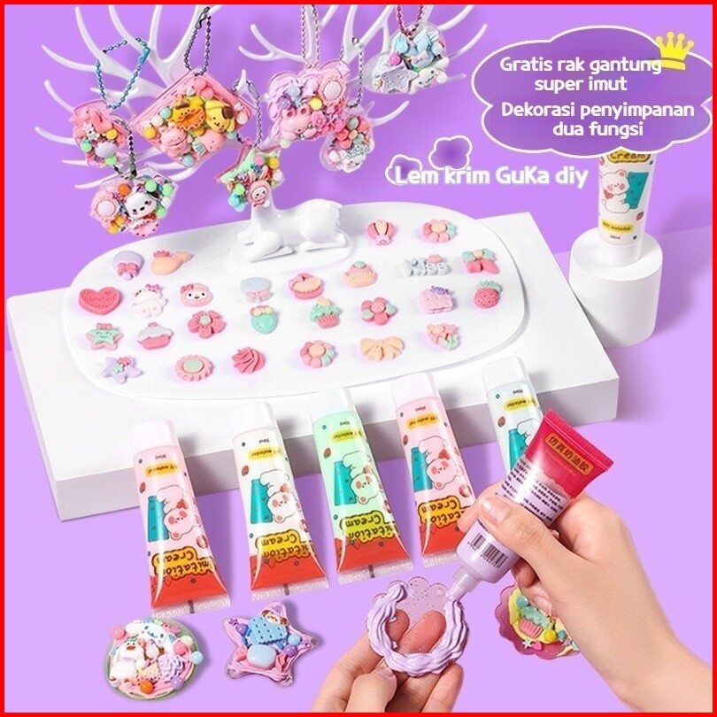 Kugoo 599pcs Diy Guka Set Diy Deco Cream Set Gantungan Kunci Akrilik Diy Keychain Set Kartu Stiker Luca Kotak Guka Cream