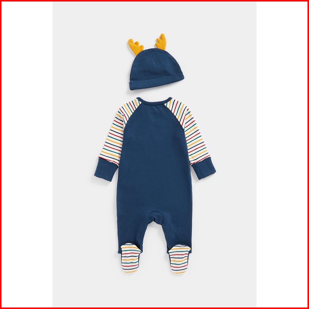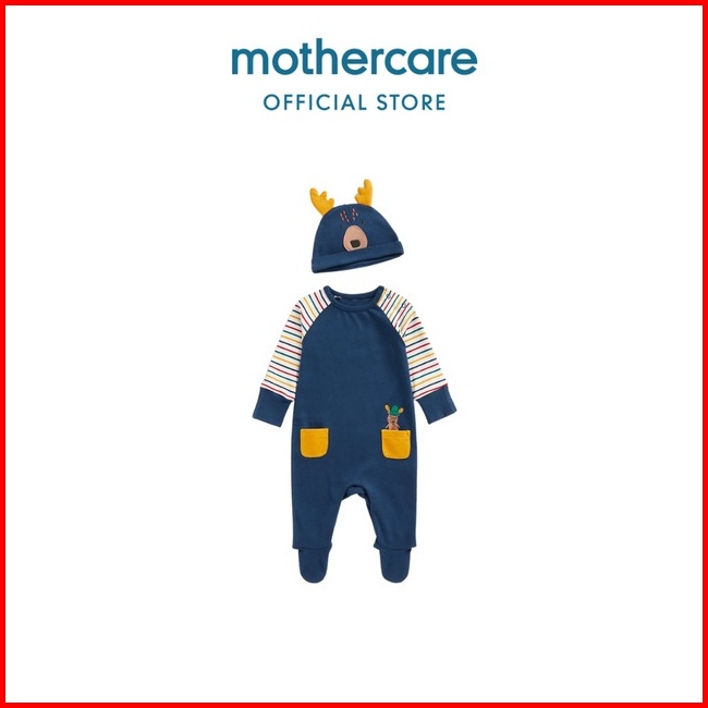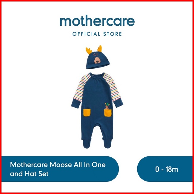 Mothercare Moose All In One And Hat Set - Set Terusan Bayi Laki-laki Biru