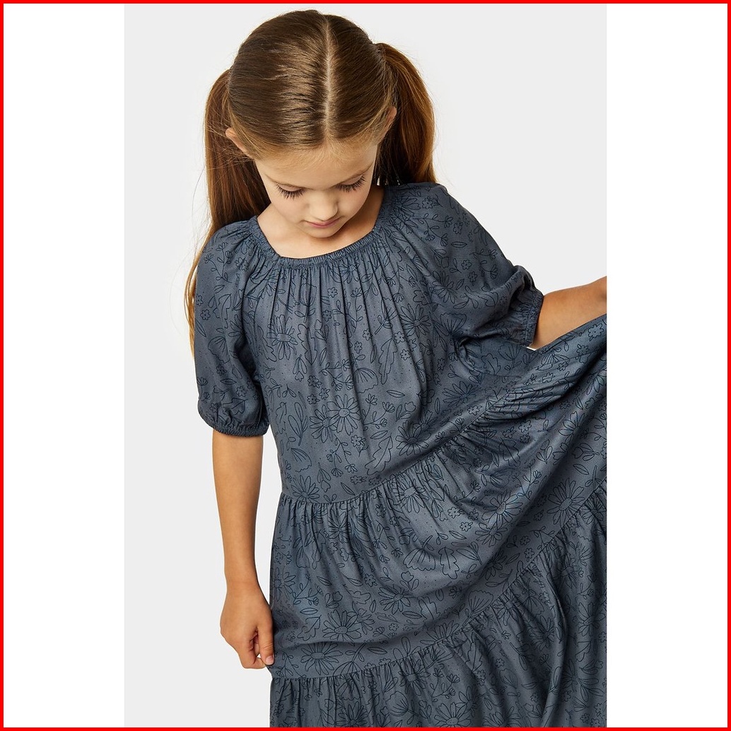 Mothercare Floral Tiered Dress - Dress Anak Perempuan Biru