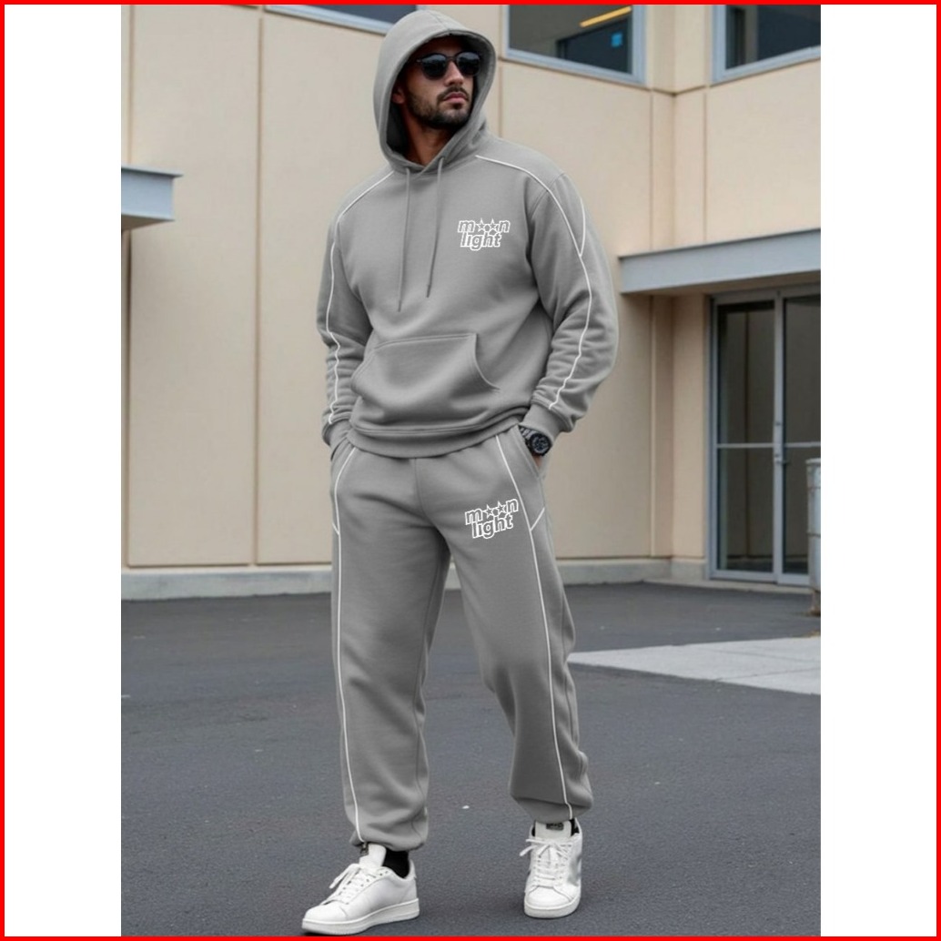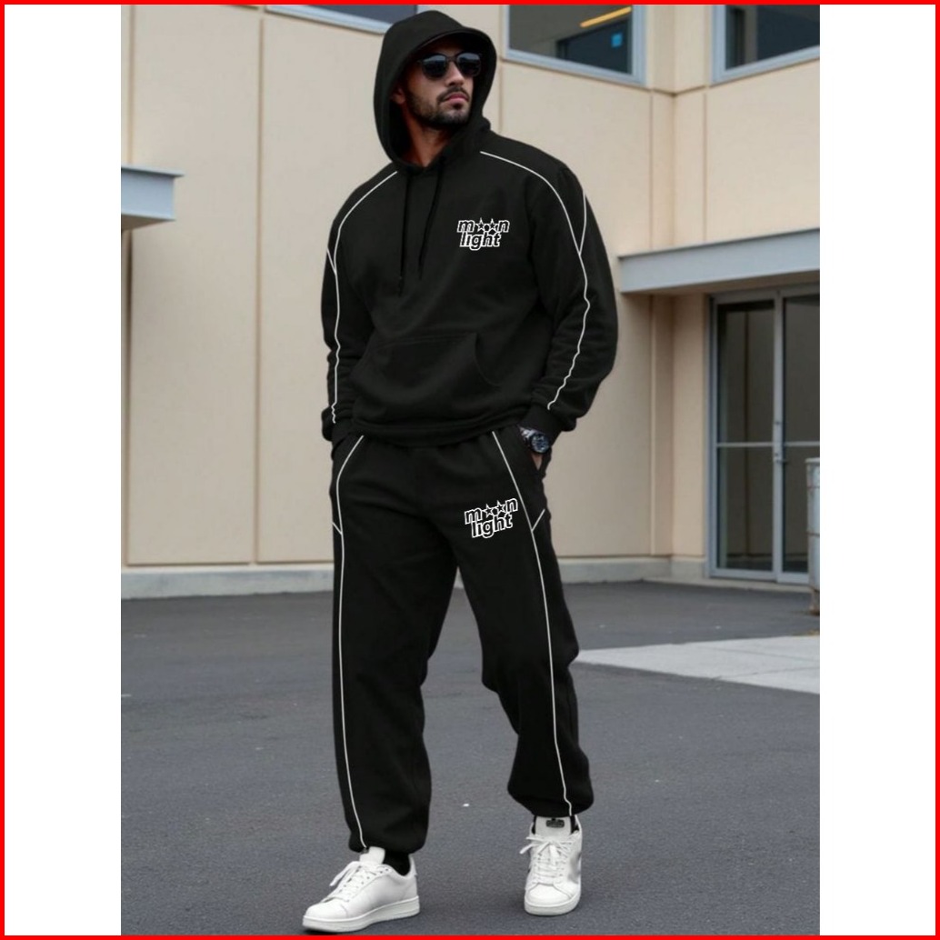 Setelan Hoodie Boxy Dan Joger Pants Moonlight Casual Outfit Men Reflektive Flecee