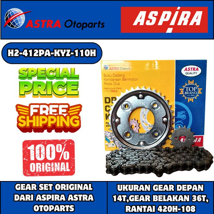 READY GEAR GIR SET + RANTAI ASPIRA KYZ - 110H MOTOR HONDA SUPRA X 125 HELM I