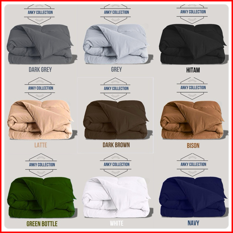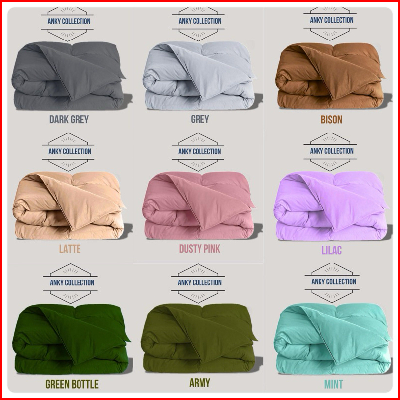 DARK GREY, GREY, BLACK, LILAC, MINT, ARMY, DUSTY PINK, PURPLE, GREEN BOTTLE, LEMON, WHITE, LATTE, DARK BROWN, BISON, SPREI PUTIH POLOS