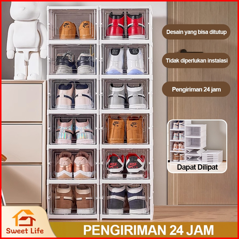 Rak Sepatu Lipat Anti Debu Lemari Multifungsi Serbaguna Rak Susun Kotak Sepatu Portable Lemari Plastik Shoe Box Praktis