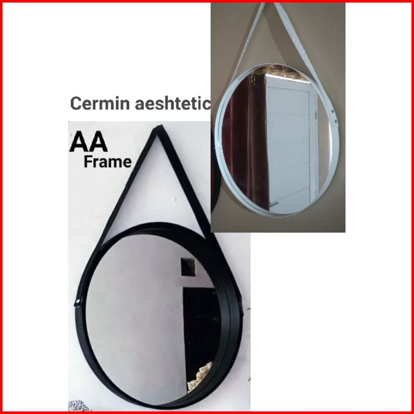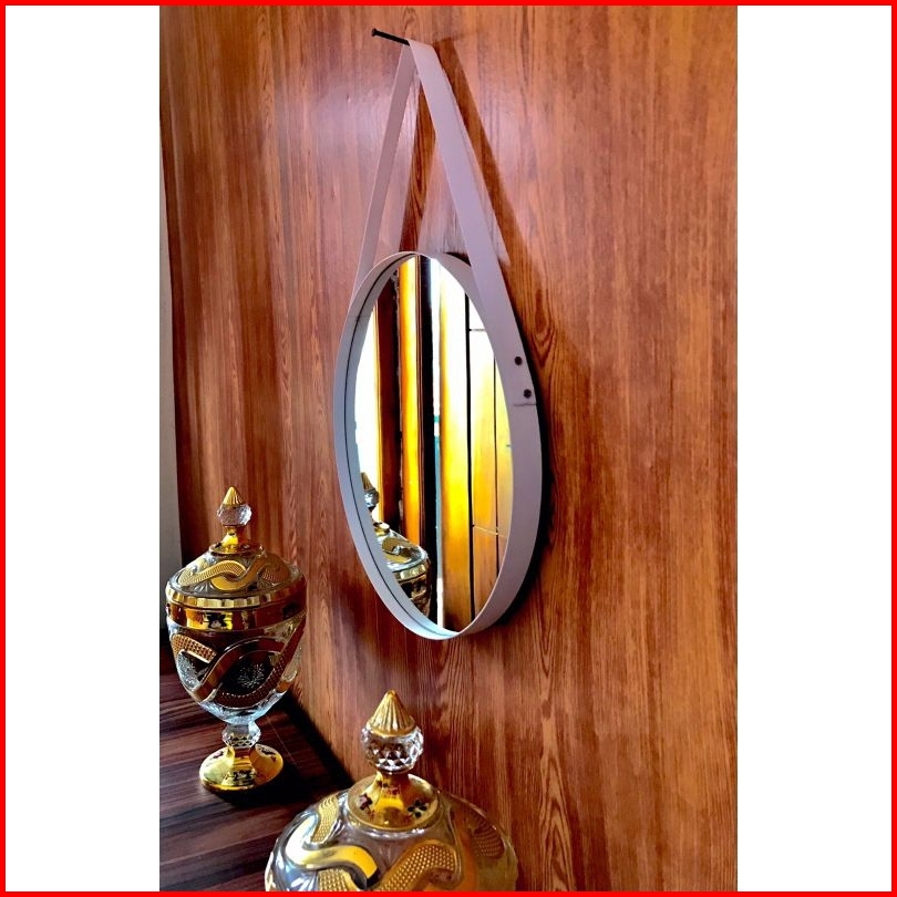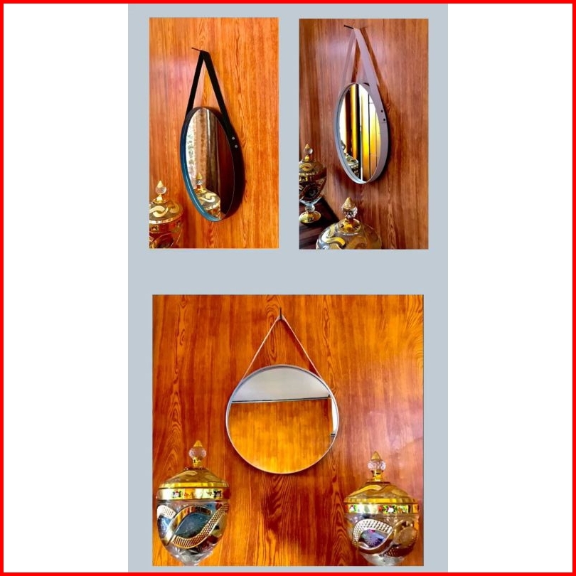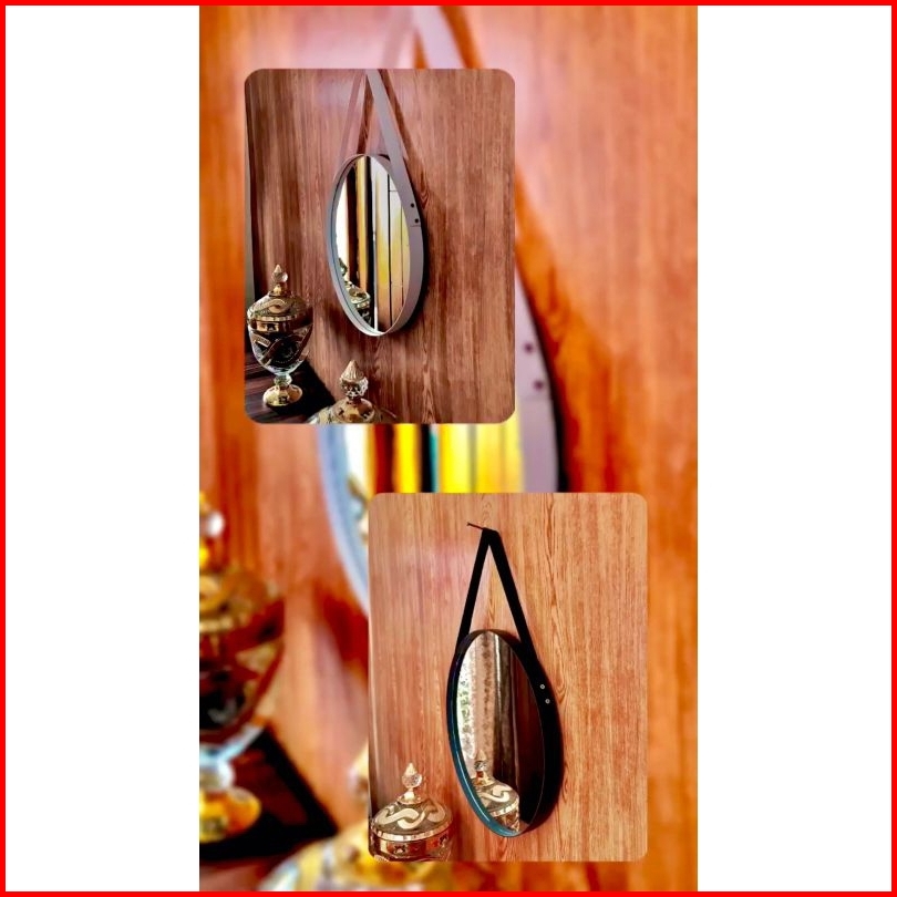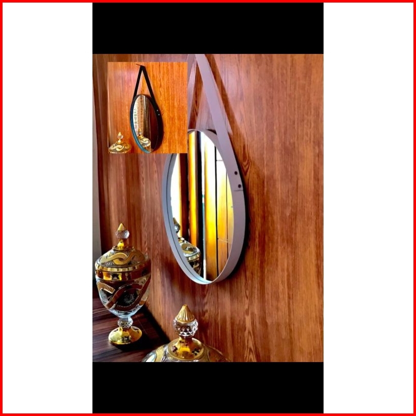 Free Packing Kayu Cermin Bulat Aesthetic - Kaca Cermin Gantung Tali