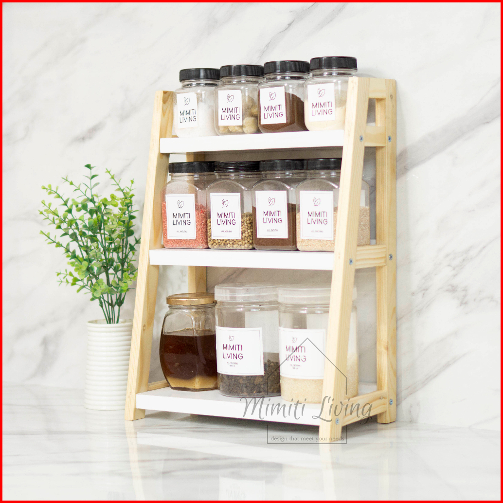 Terlaris.. Rak Bumbu Dapur Serbaguna 3 Susun Medium Rak Variasi Rak Kayu Serbaguna Multifungsi