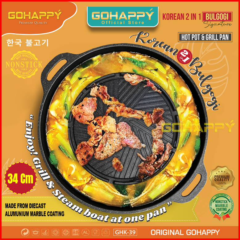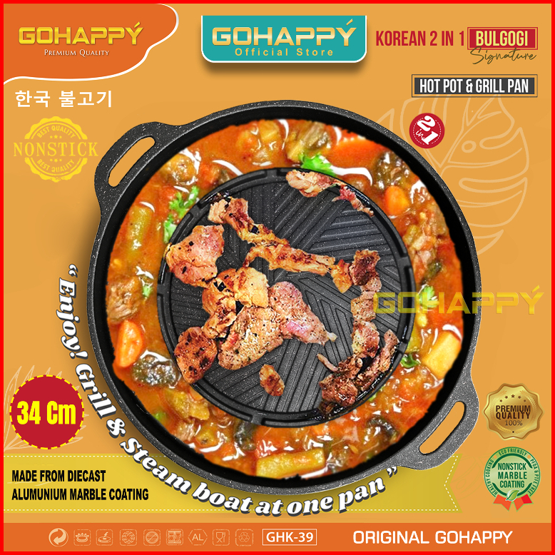 Bulgogi Pan 2in1 Alat Panggang Grill Marble Panggangan Bbq Steamboat Hot Pot Bbq Happy Call
