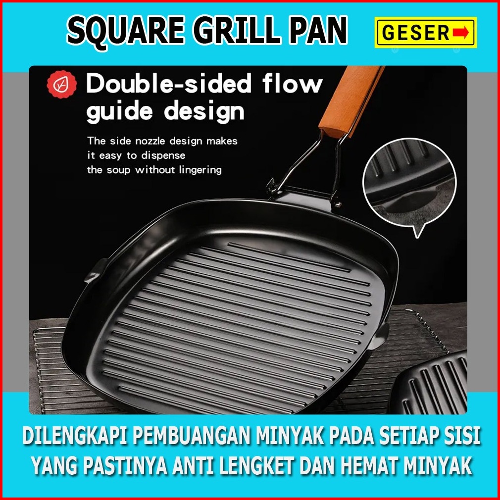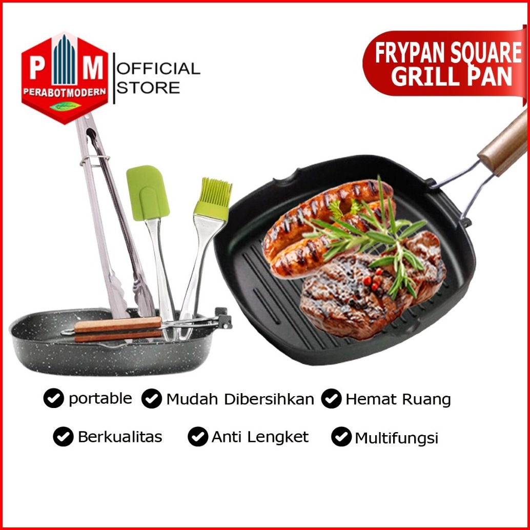 Pemanggang Square Grill Pan 20cm Alat Panggang Grill Pan Wajan Panggangan Bakaran Square Grill