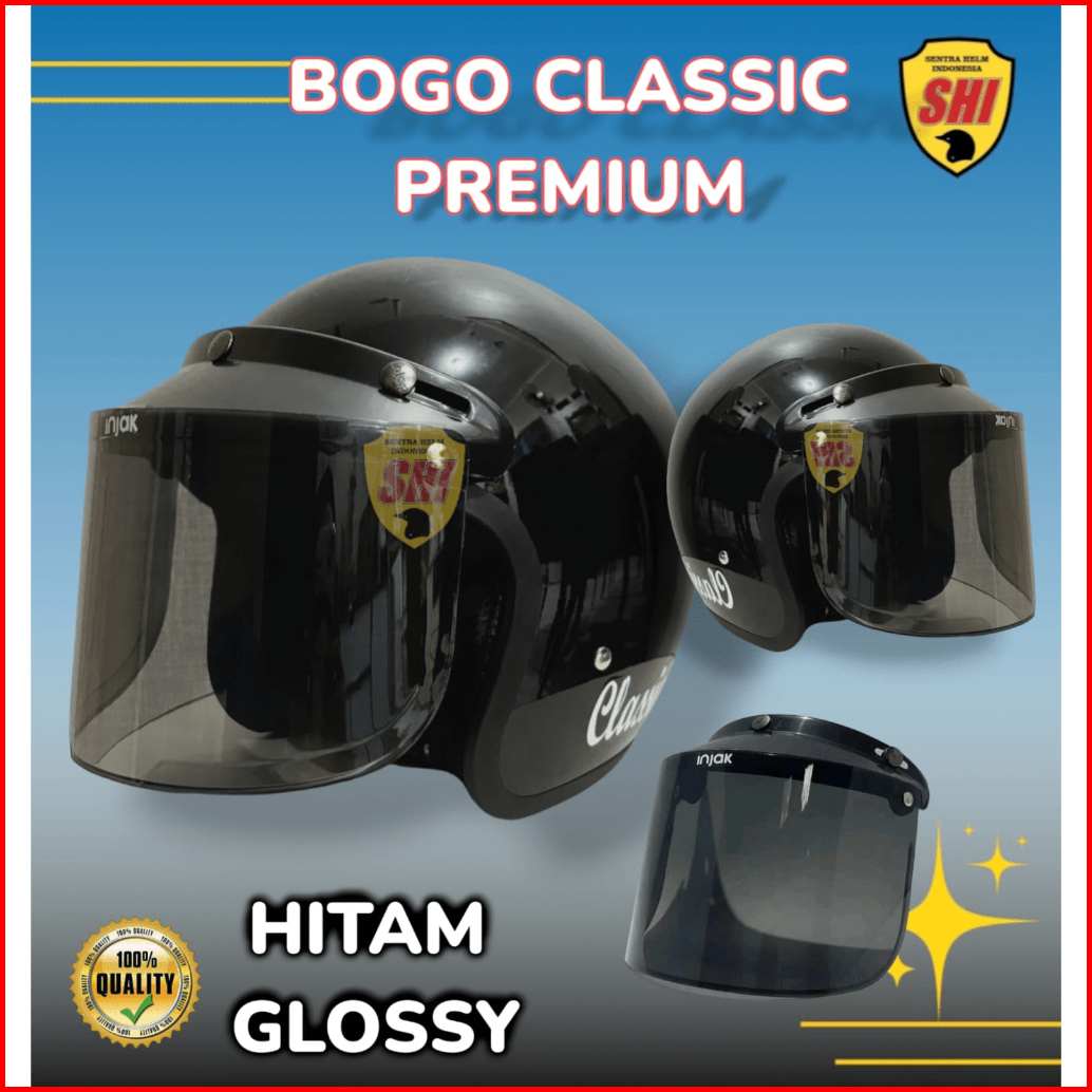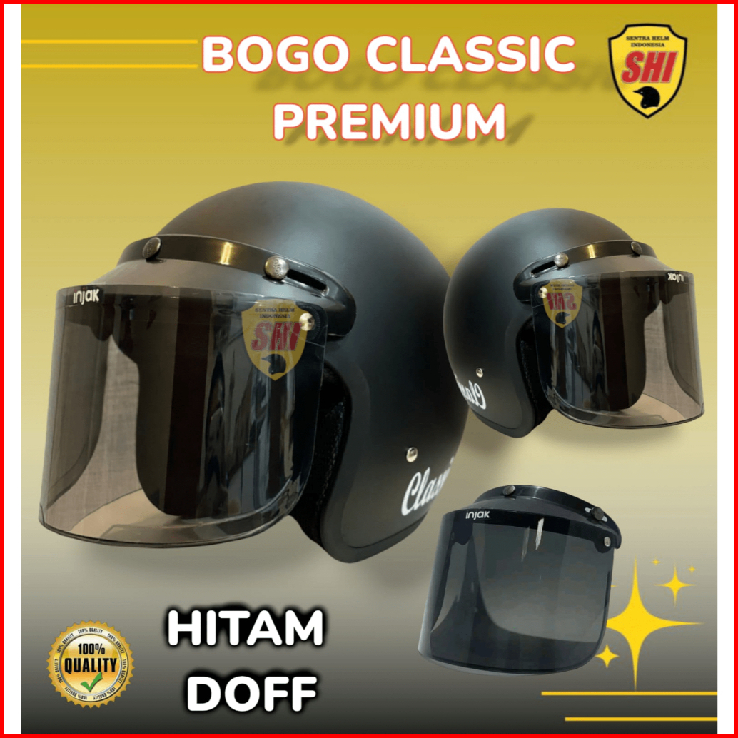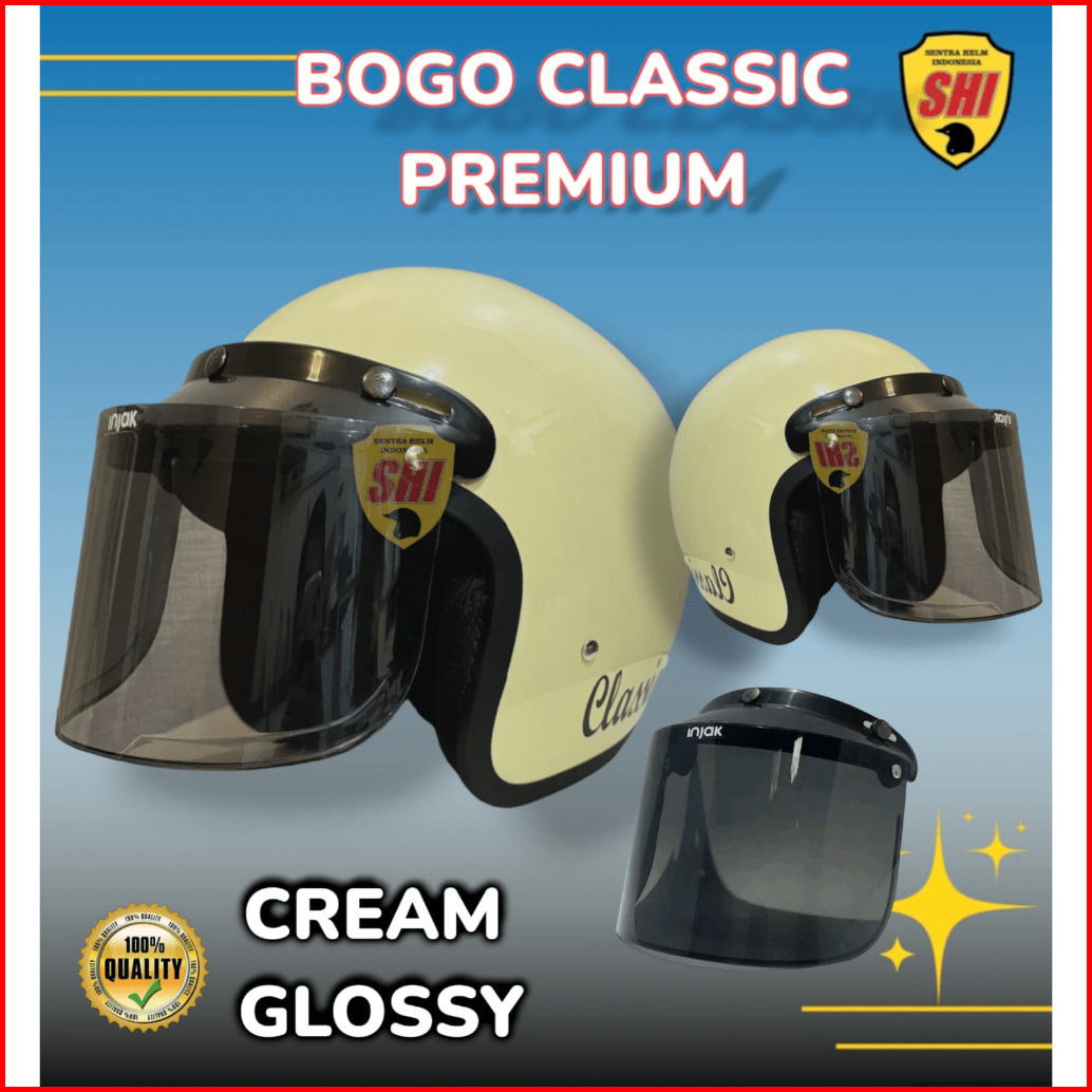 Helm Bogo Retro Premium Classic Dewasa Sni Kaca Injak Busa Knockdown Satu Ukuran