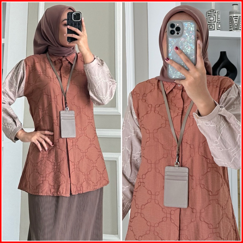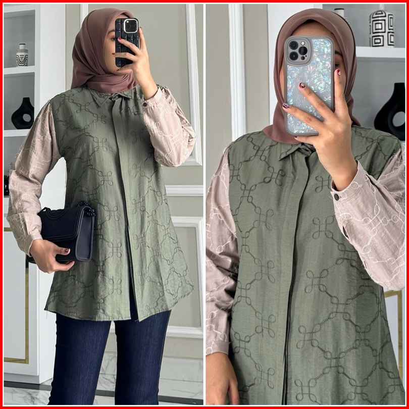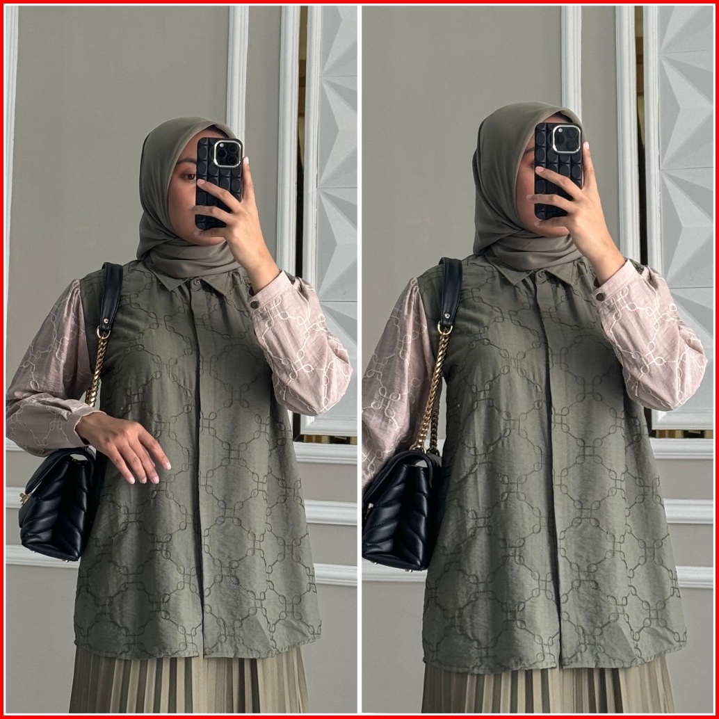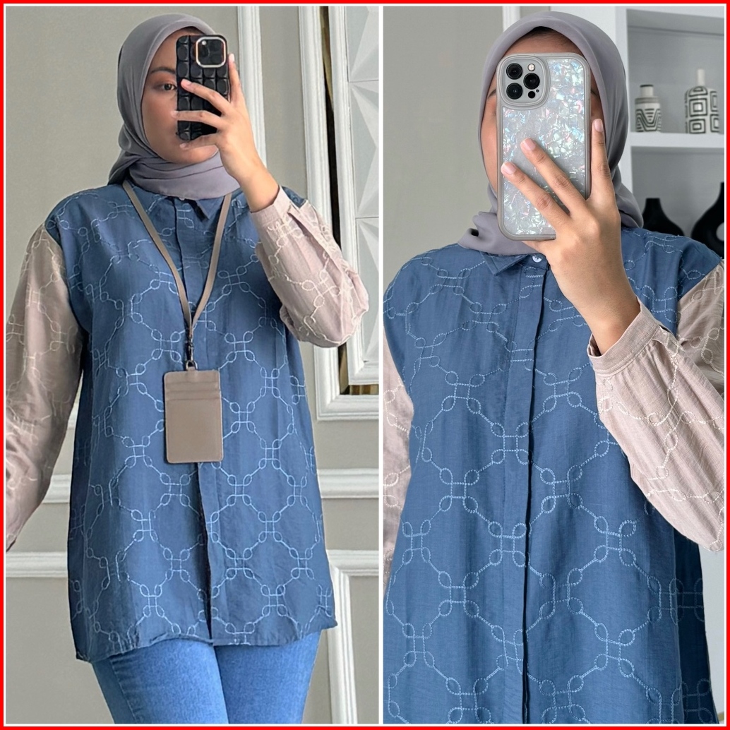Arzeta Blouse By Zalfa Outfit Baju Atasan Wanita Muslim Blouse Kerja Kuliah Basic Embos Polo Linen Premium Lengan Panjan