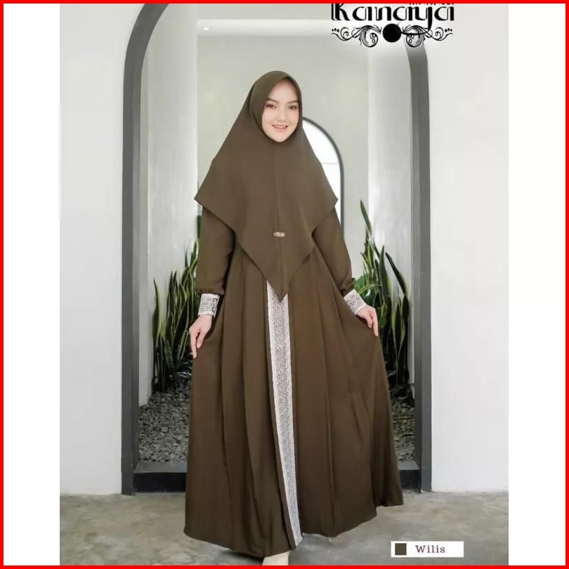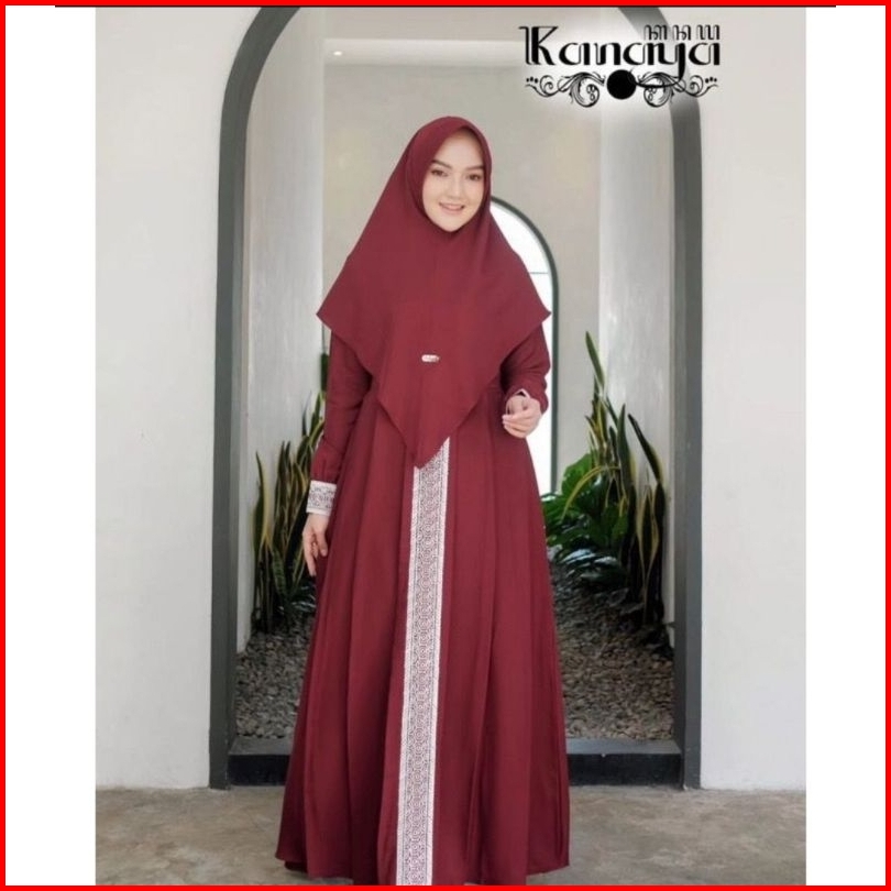 Gamis Plus Jilbab Set Syari Kanaya Series Baju Kondangan Wanita Elegan Simpel Mewah Pakaian Muslim