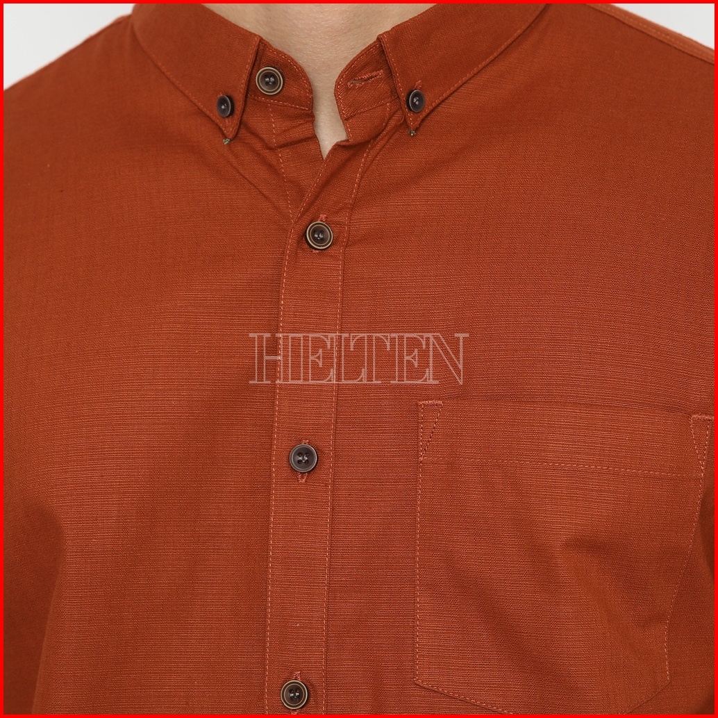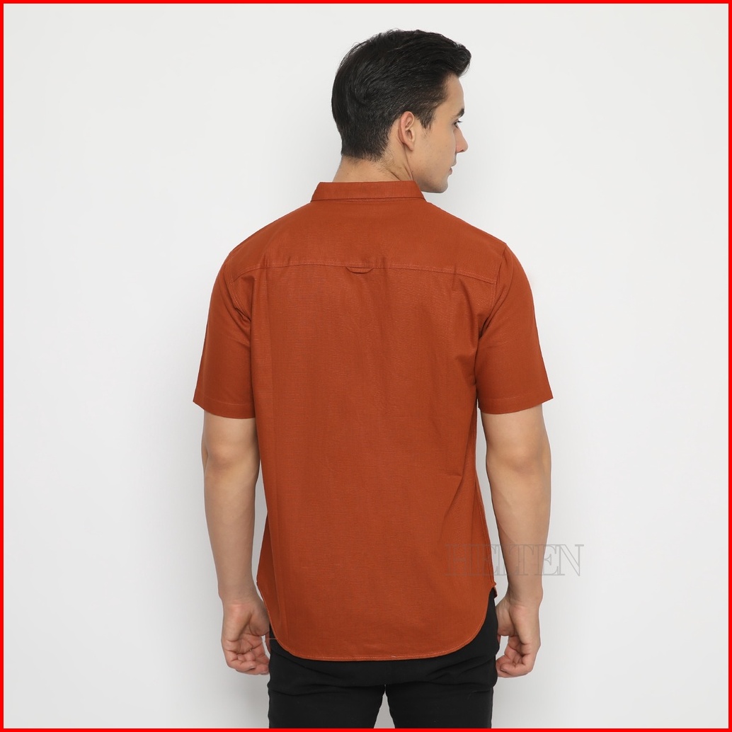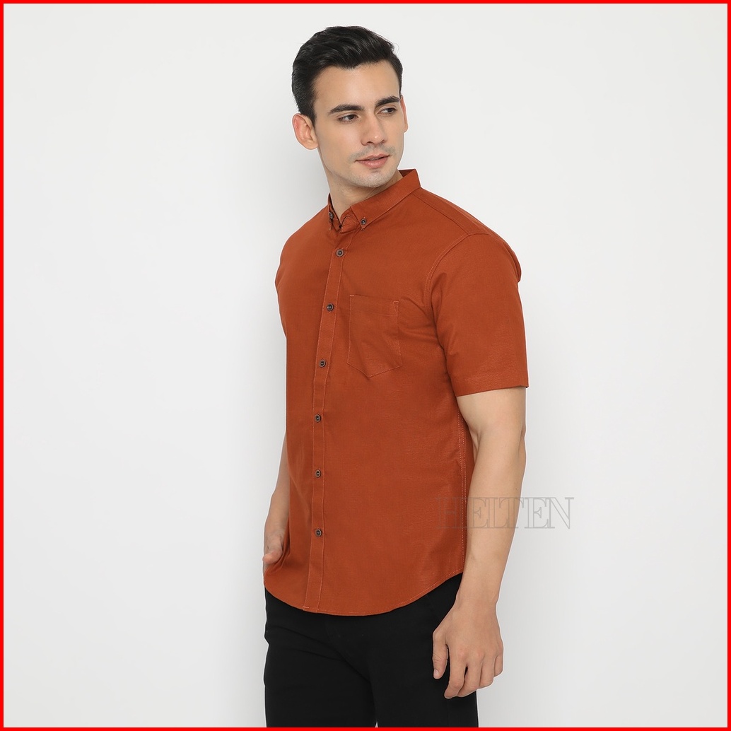 Helten Kemeja Pria Kasual Polos Lengan Pendek Warna Merahbata Teracota Comfort Slim Banyak Warna