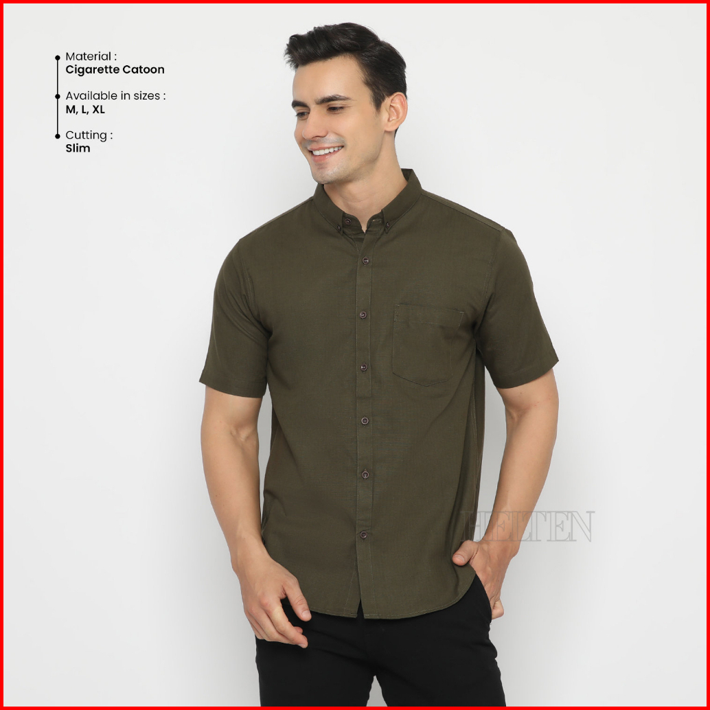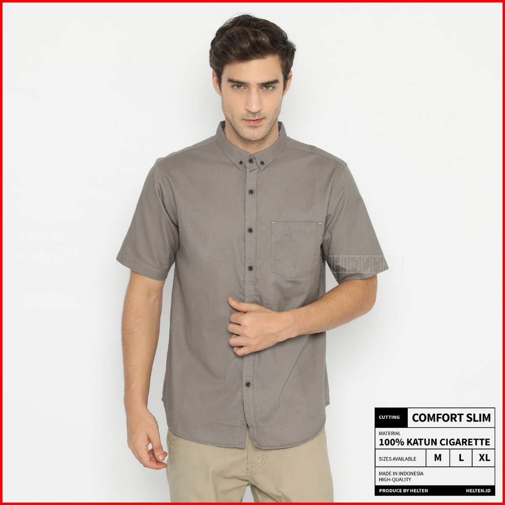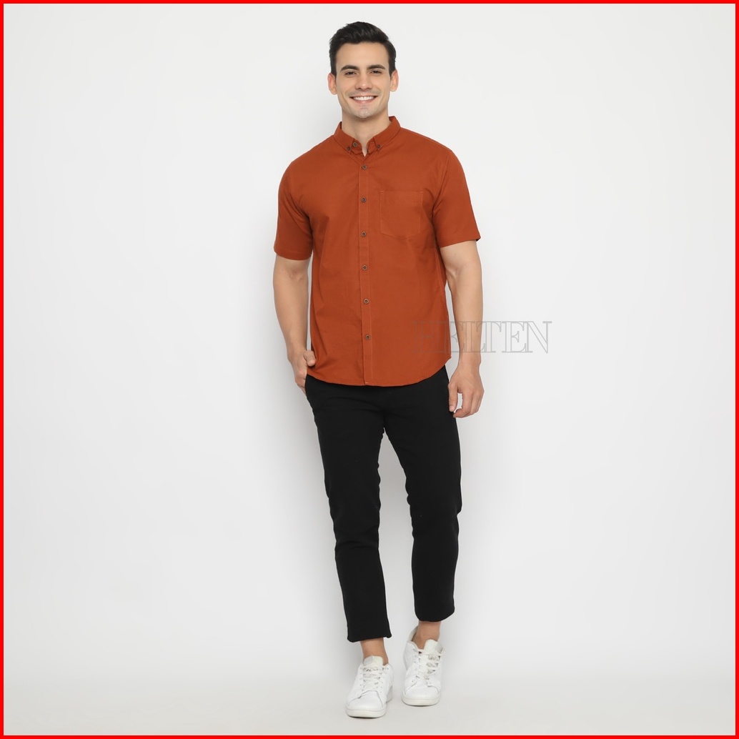 Helten Kemeja Pria Kasual Polos Lengan Pendek Warna Merahbata Teracota Comfort Slim Banyak Warna