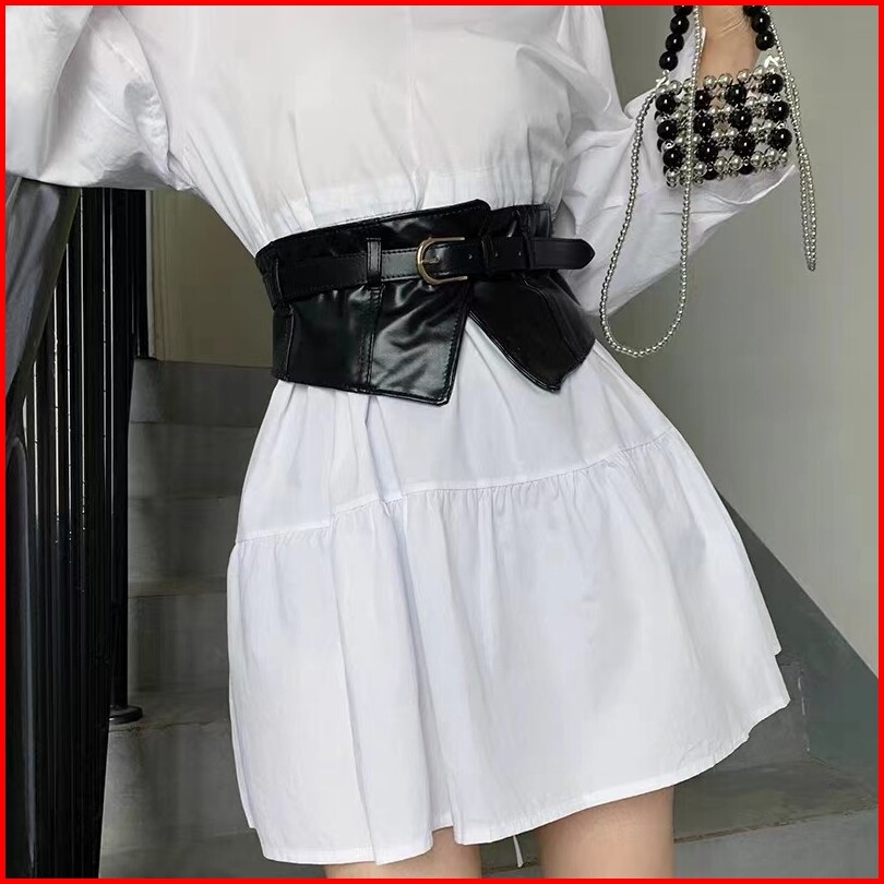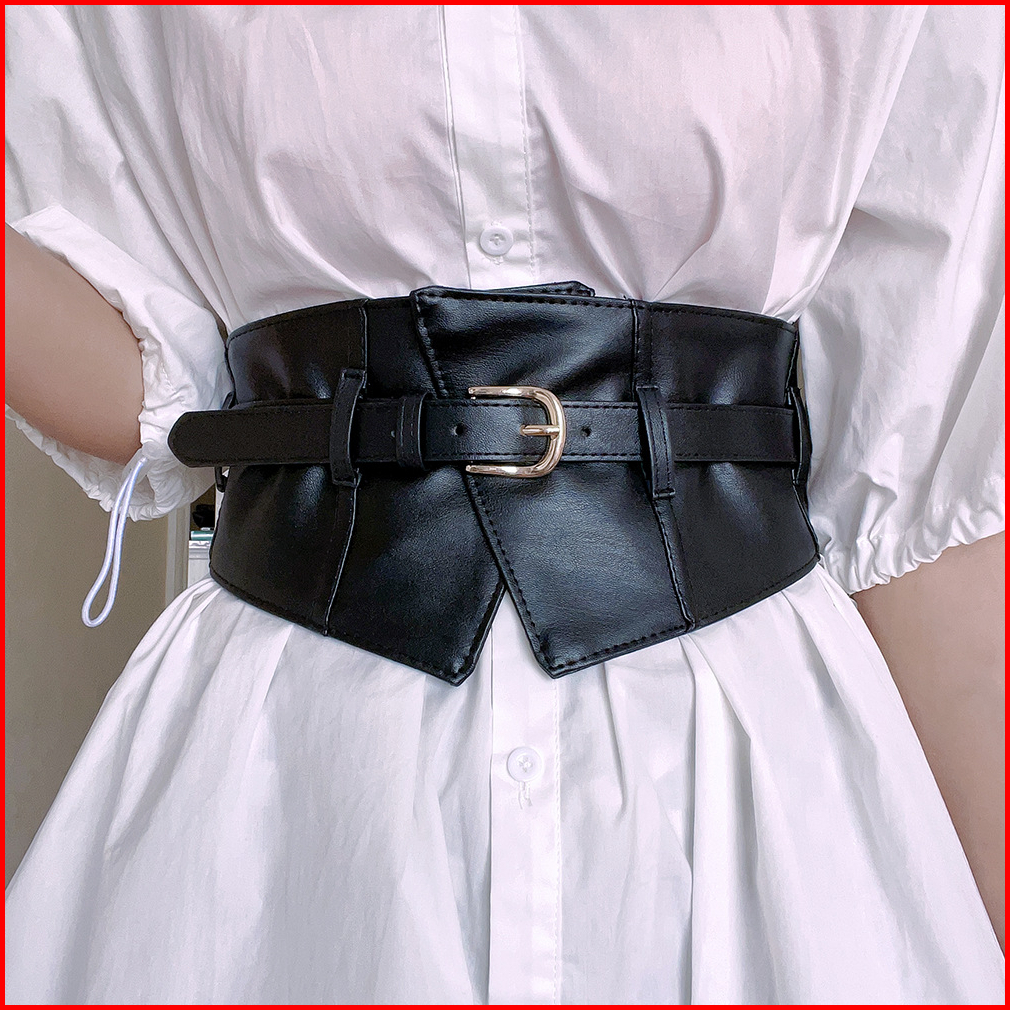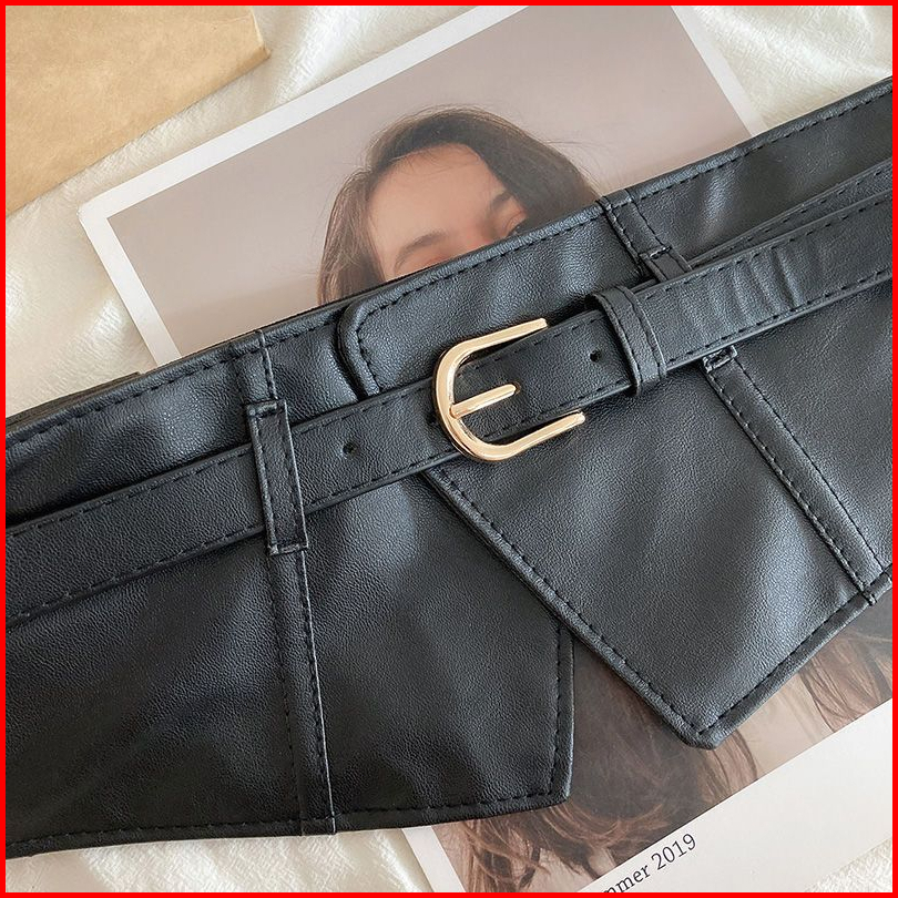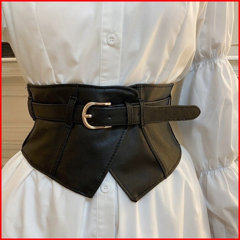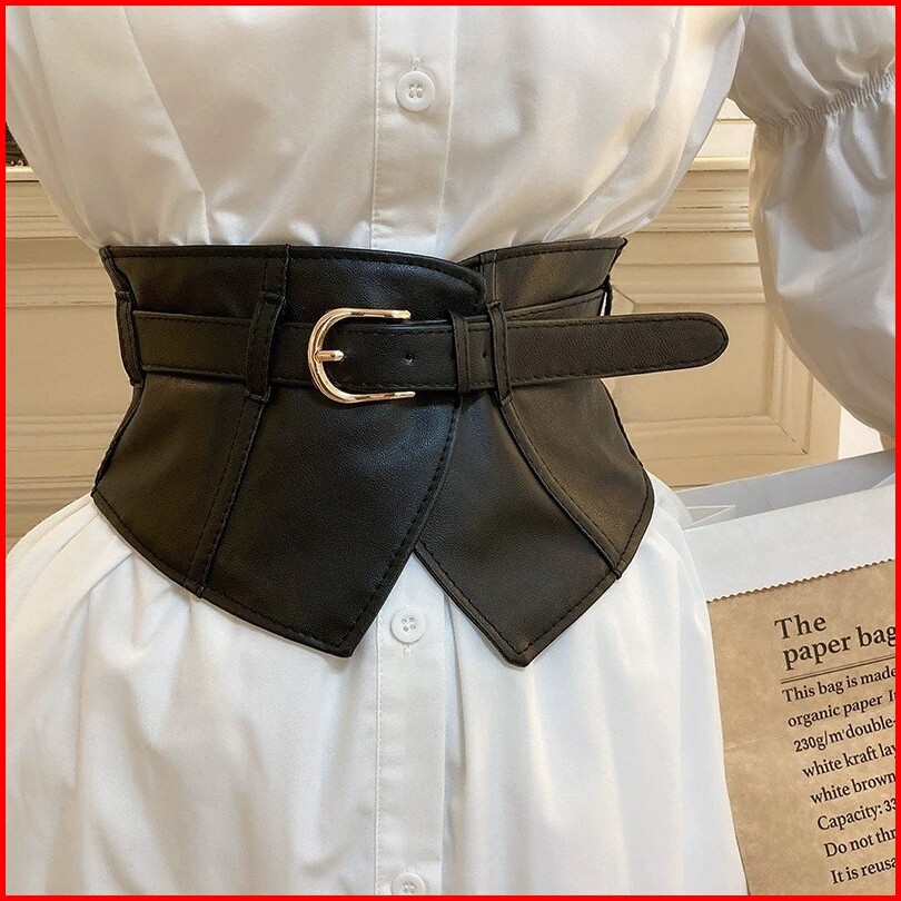 Belt Wanita Corset Obi Kulit Gasper Retro Black Wide Waistband Fashion Ikat Pinggang Wanita
