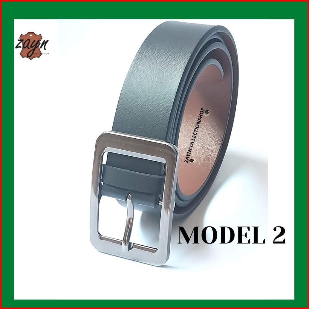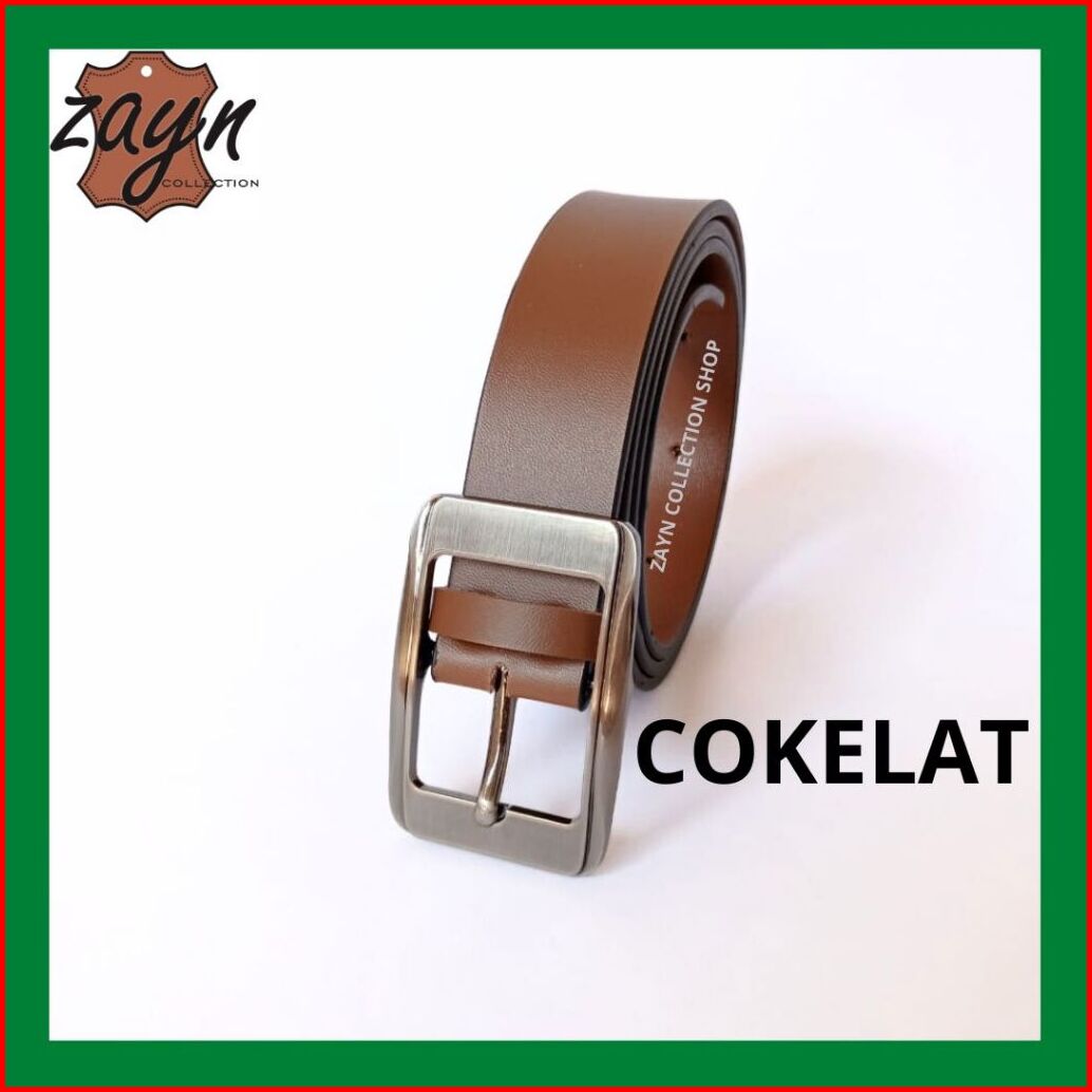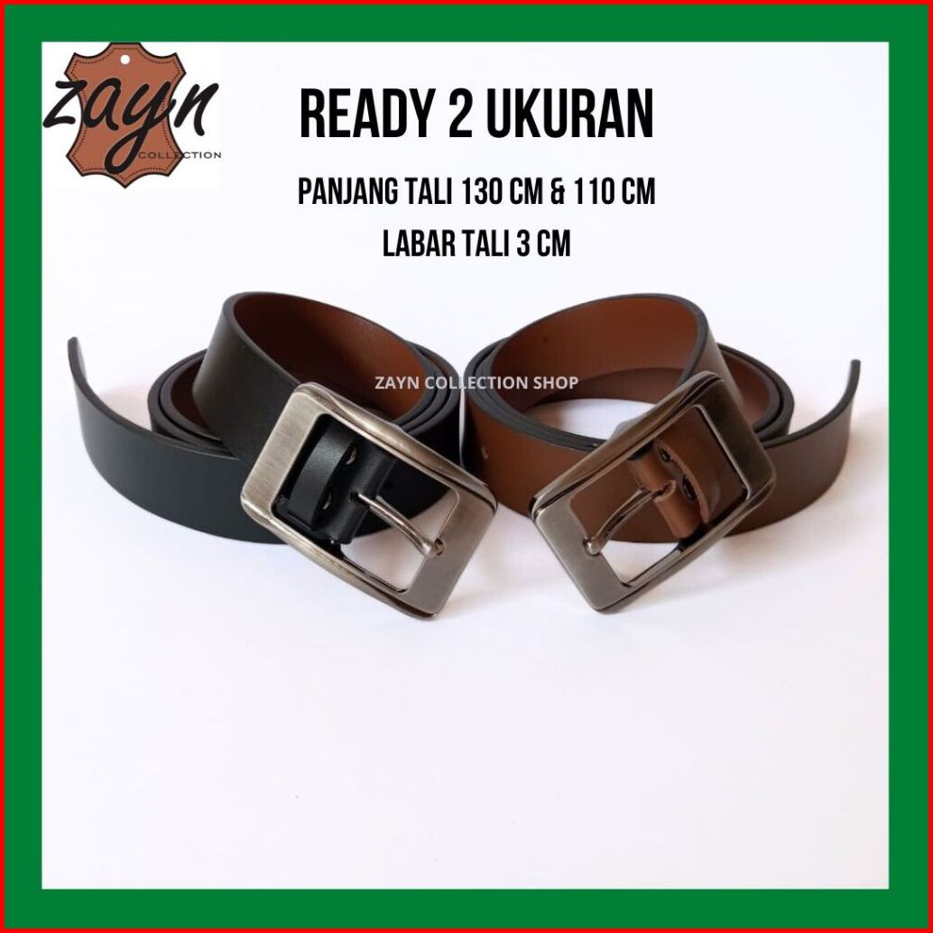 Ikat Pinggang Unisex Kepala Kotak Model Tusuk Jarum Gesper Pria Wanita Kulit Polos Hitam