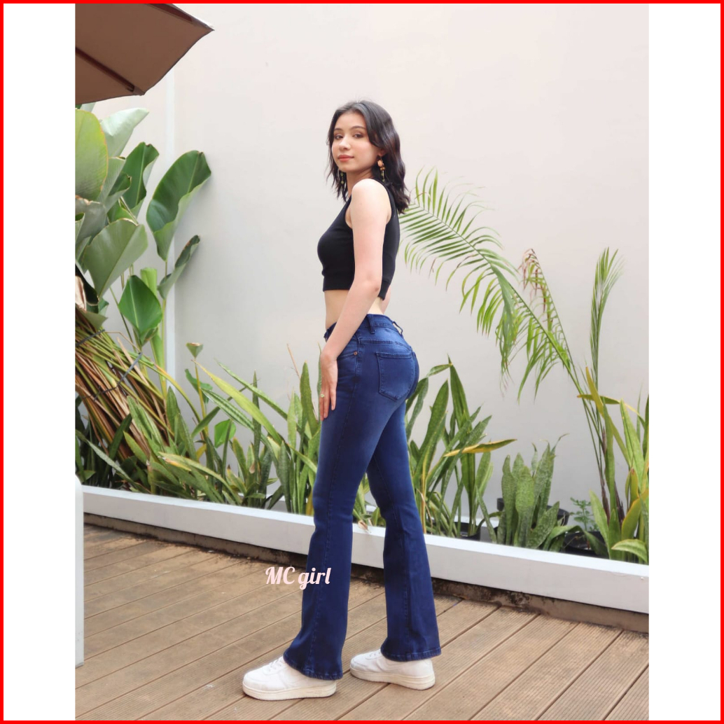 Size 27 - 34 Mc Girl - Celana Jeans Premium Cutbray Kaki Polos Warna Biru Tua Wanita Cutbrai Panjang Colour Dark Blue Cu