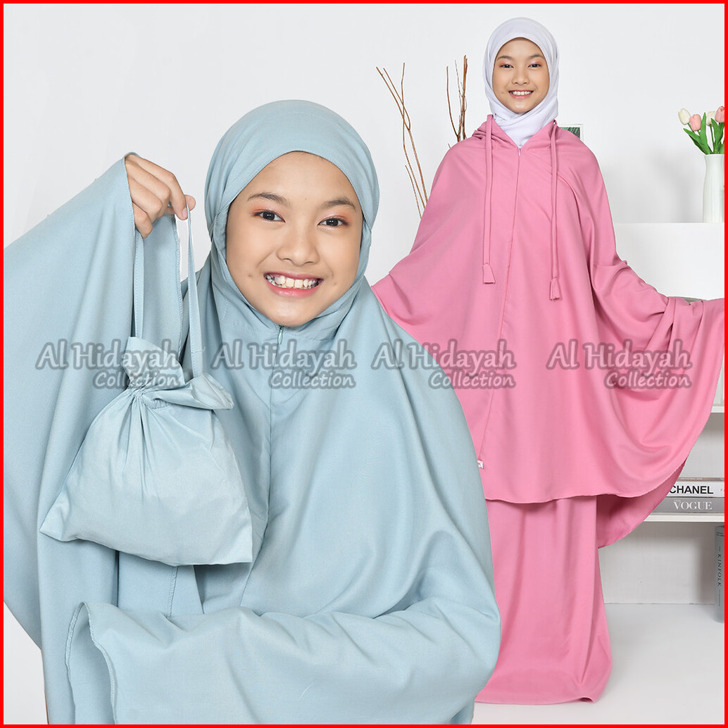 Mukena Anak Traveling 2 In 1 Resleting Dagu Katun Premium Polos Sd Smp Remaja Mukenah Tanggung 7 S D 15 Tahun