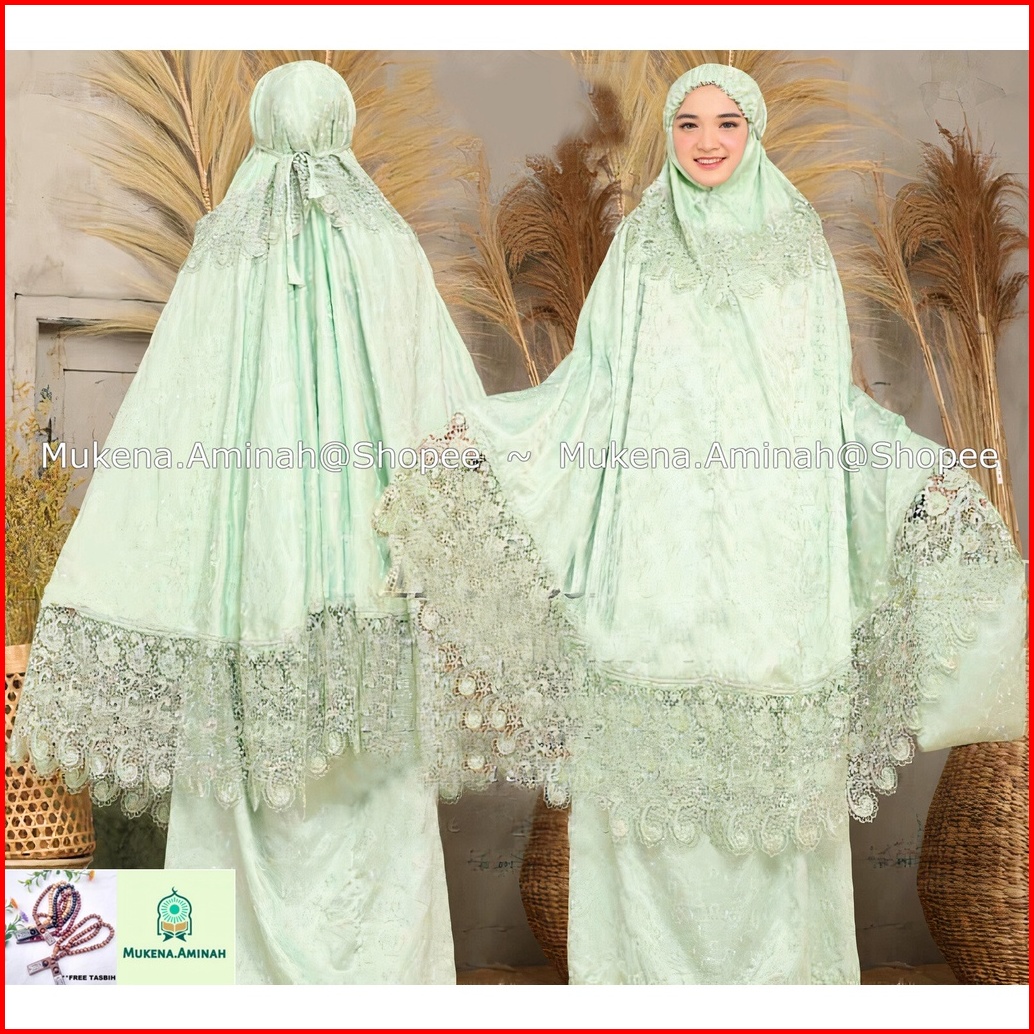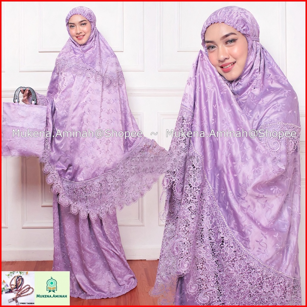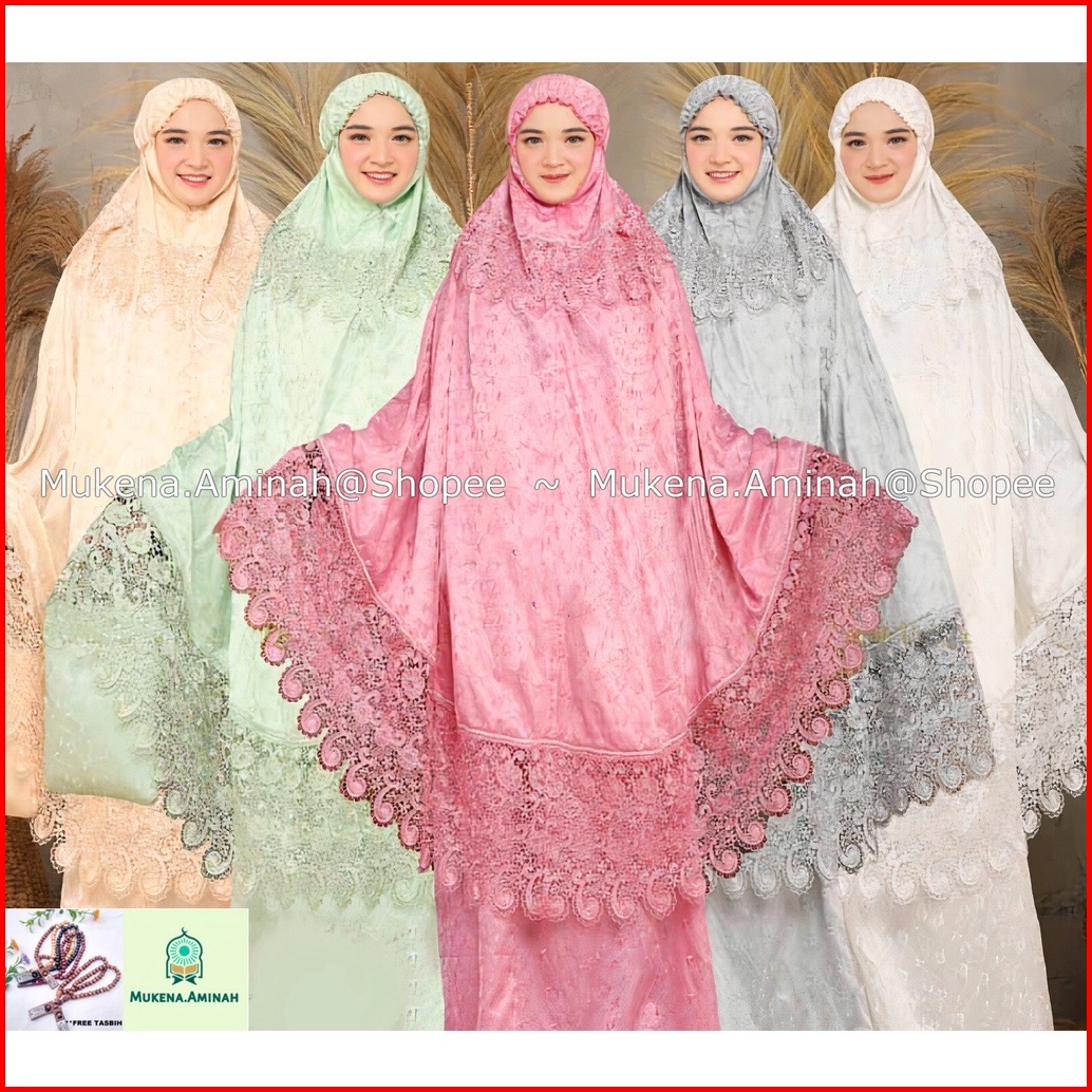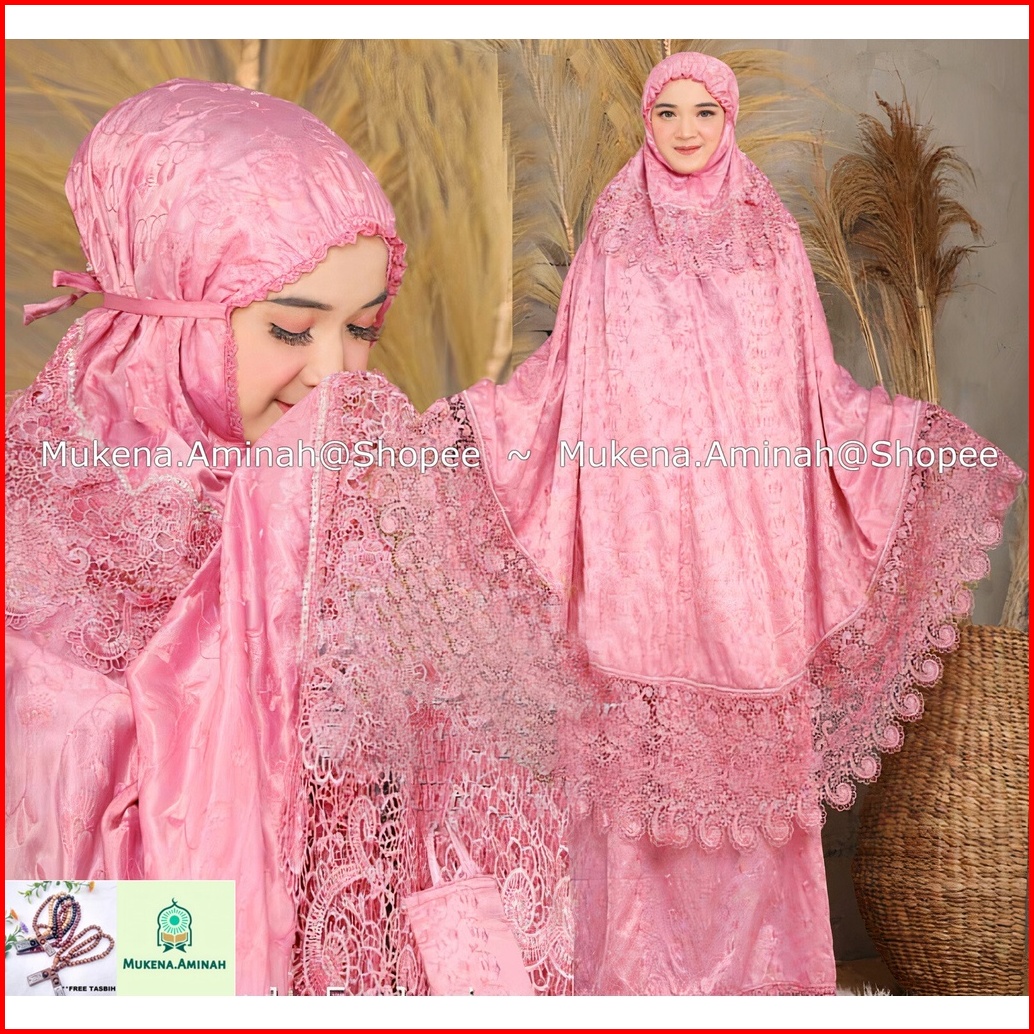 Mukena Dewasa Sutra Bordir Paris Prada Premium Renda Keong Mewah Warna
