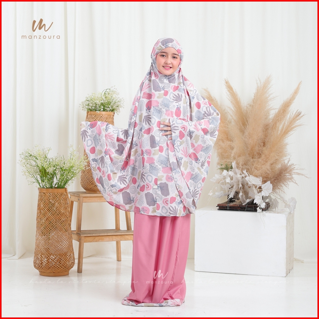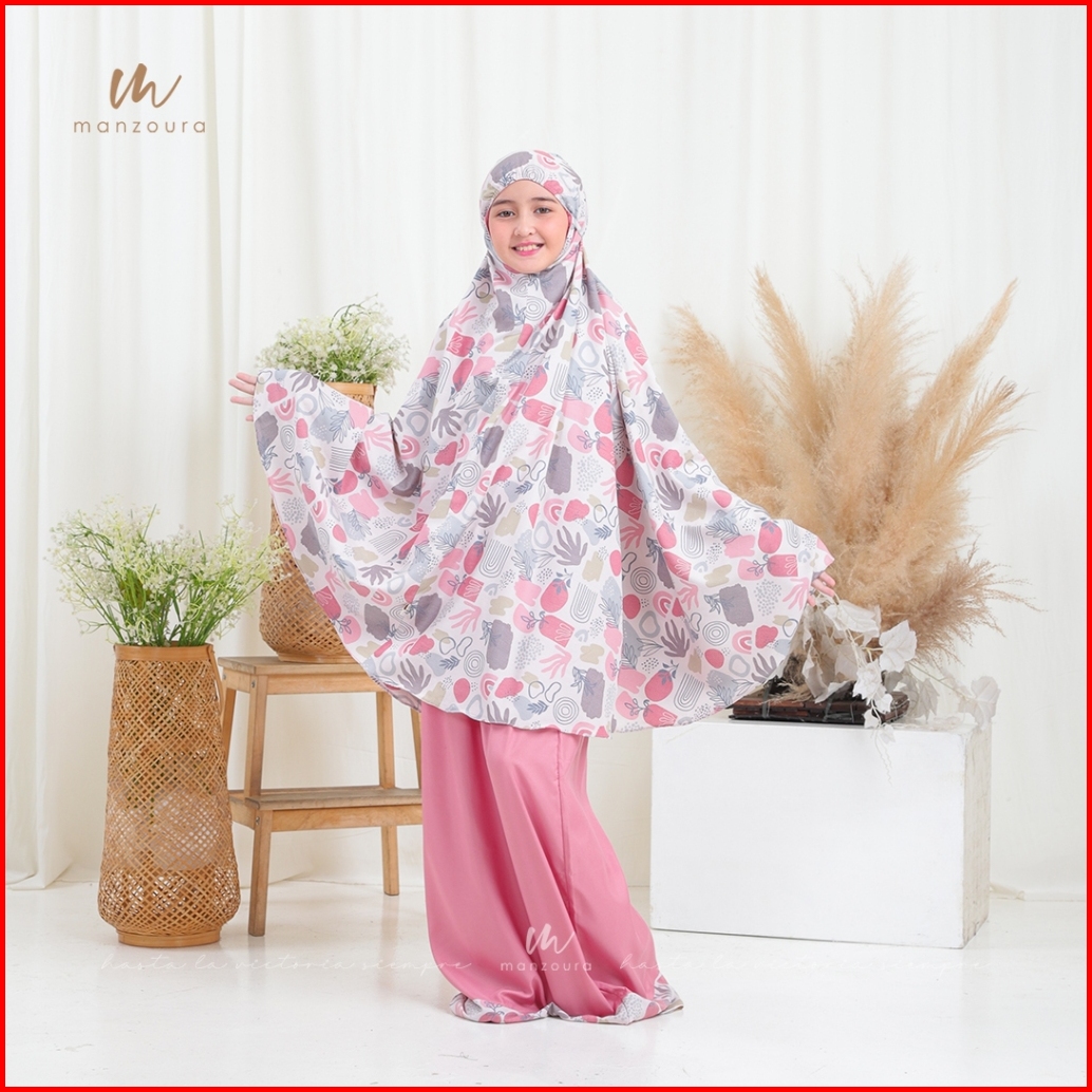 Manzoura - Mukena Anak Tanggung Poly Rayon Motif Lucu Mukenah Anak Perempuan Cantik Usia 6 -13 Tahun