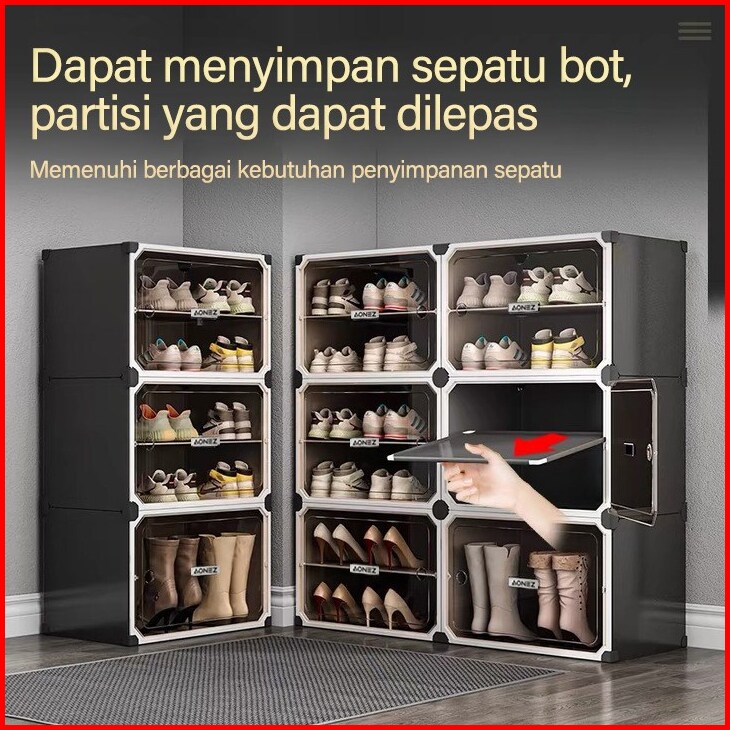 Homes Rak Sepatu Susun Tertutup Anti Debu 4- 20 Box Sepatu Lemari Sepatu Minimalis Kotak Sepatu Transparan Penggunaan Ru