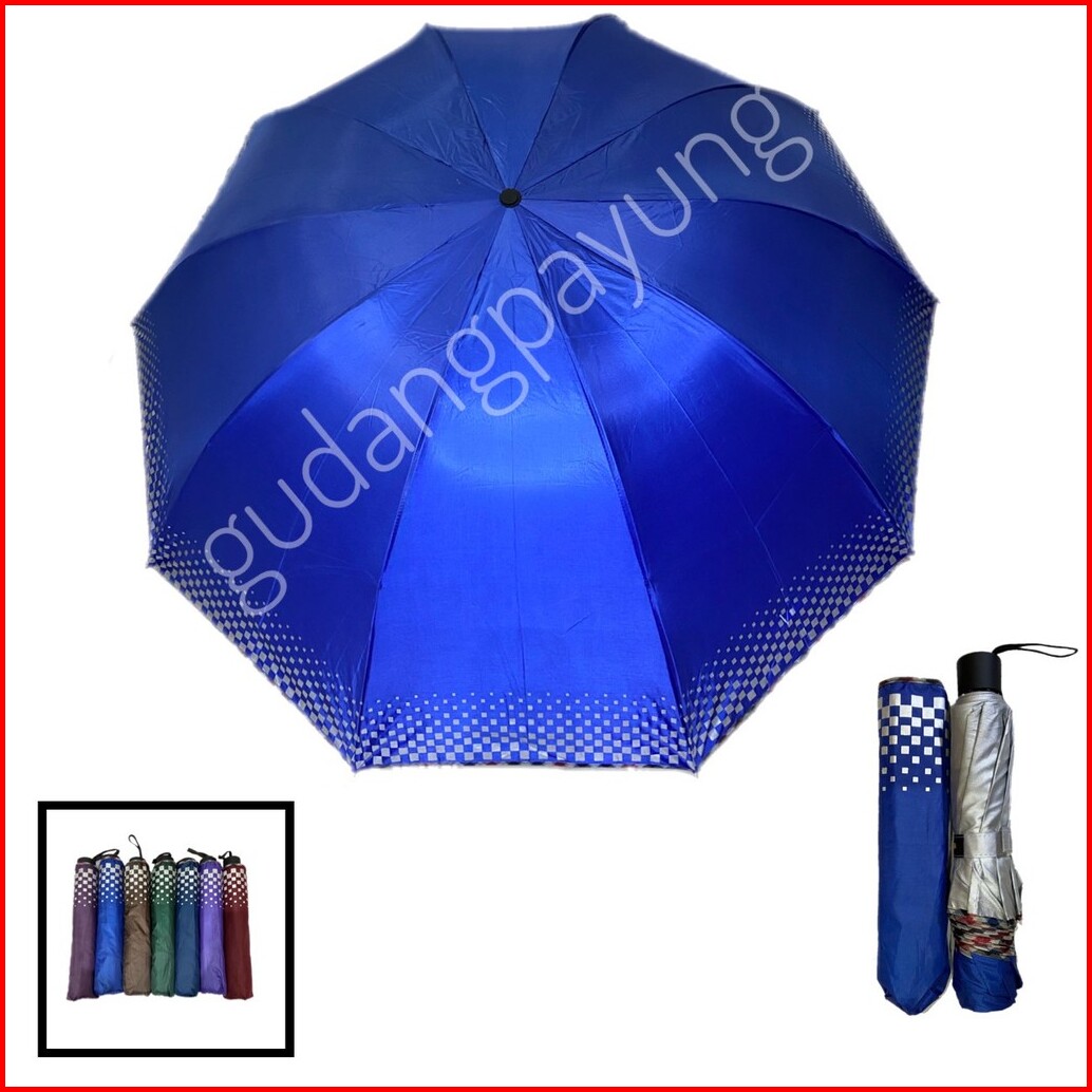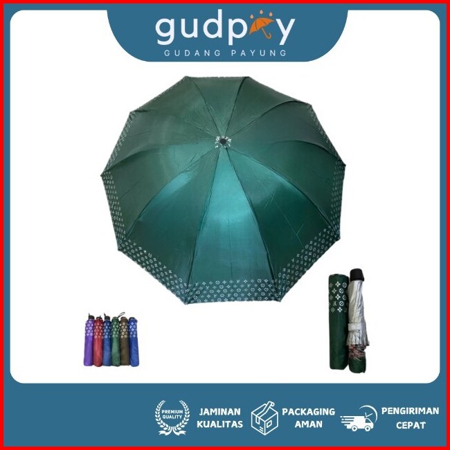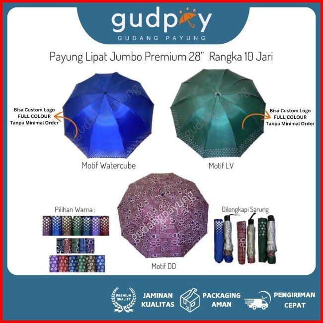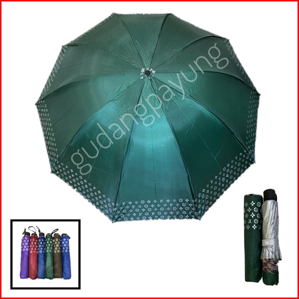 Payung Lipat 3 Jumbo 10 Jari Motif Lv Dd Dan Water Cube Bisa Custom Logo Sablon Souvenir Lapis Dalam Silver