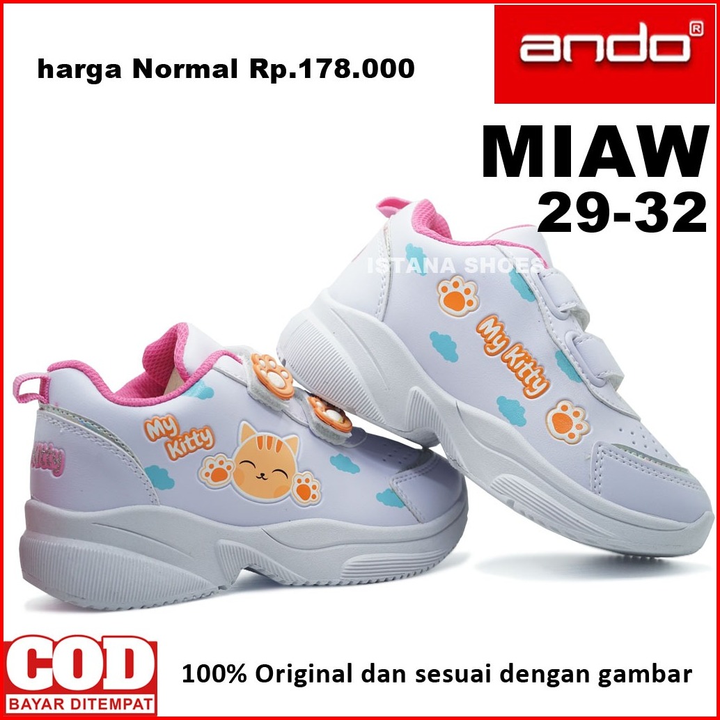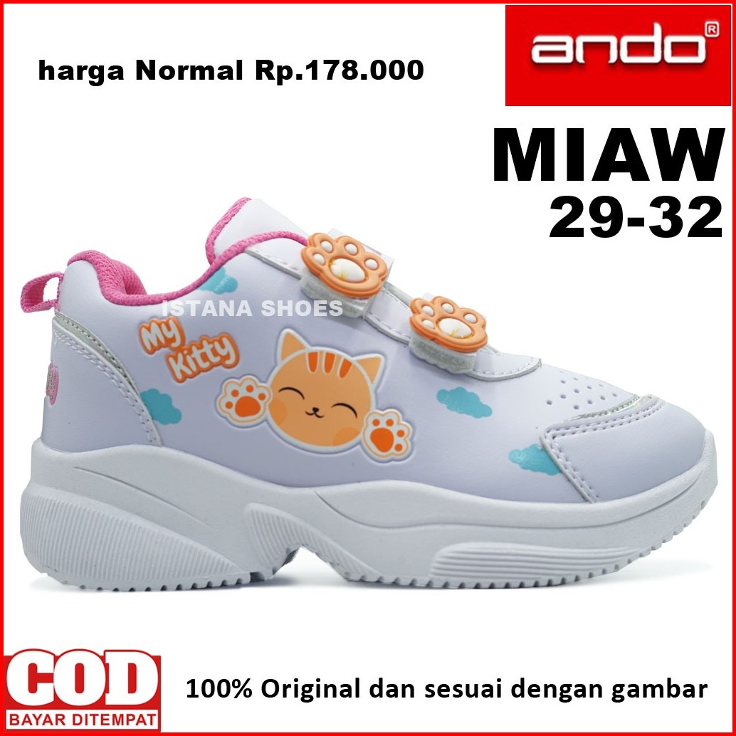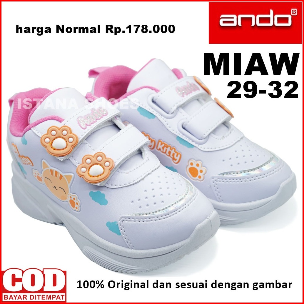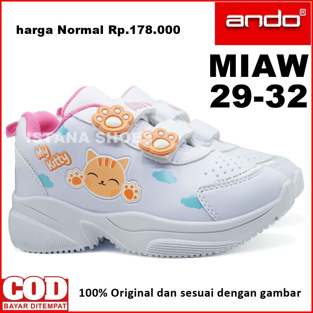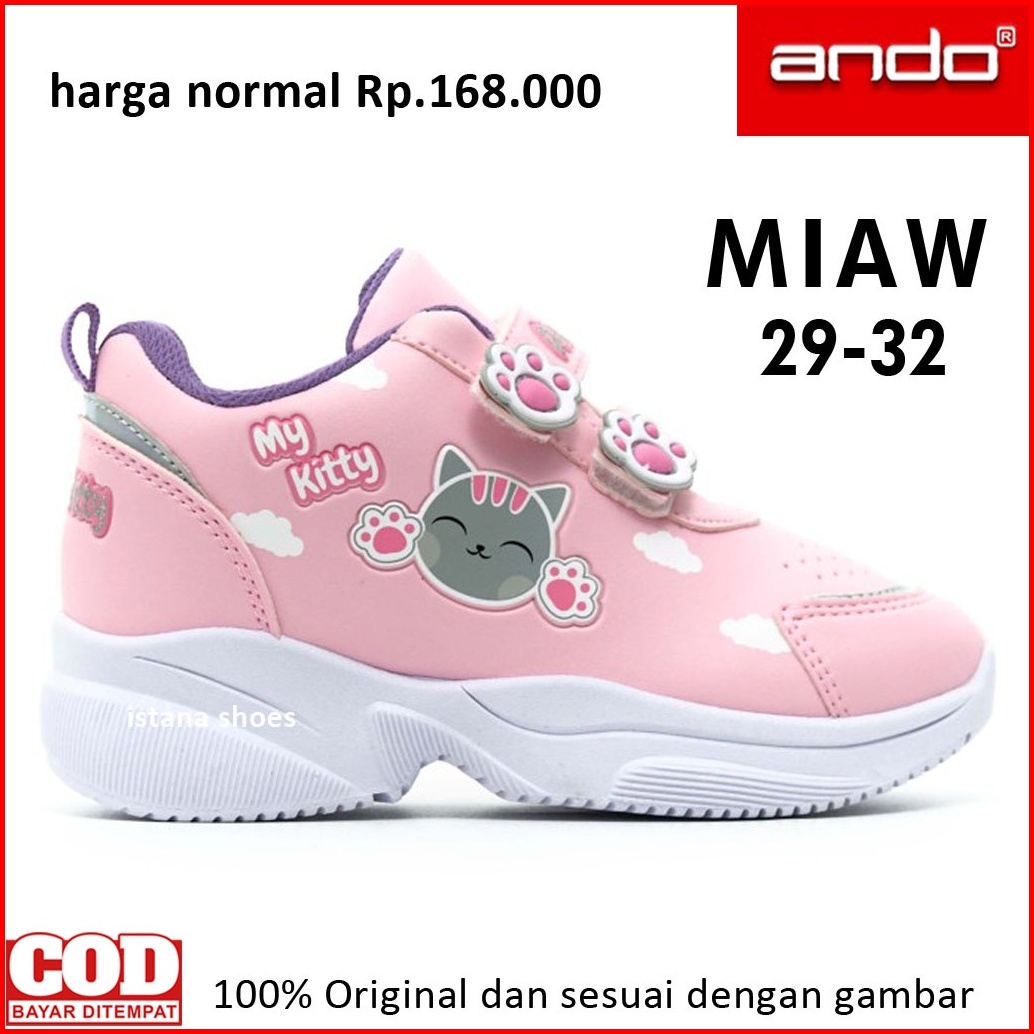 Sepatu Sekolah Anak Perempuan Paud Tk Sd Usia 3 4 5 6 7 Tahun Ando Miaw Pink Snekaers