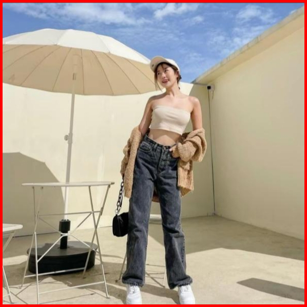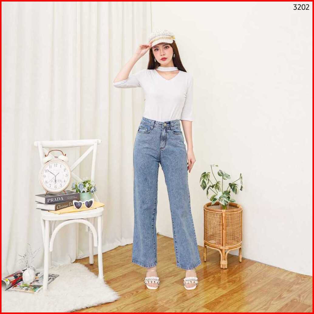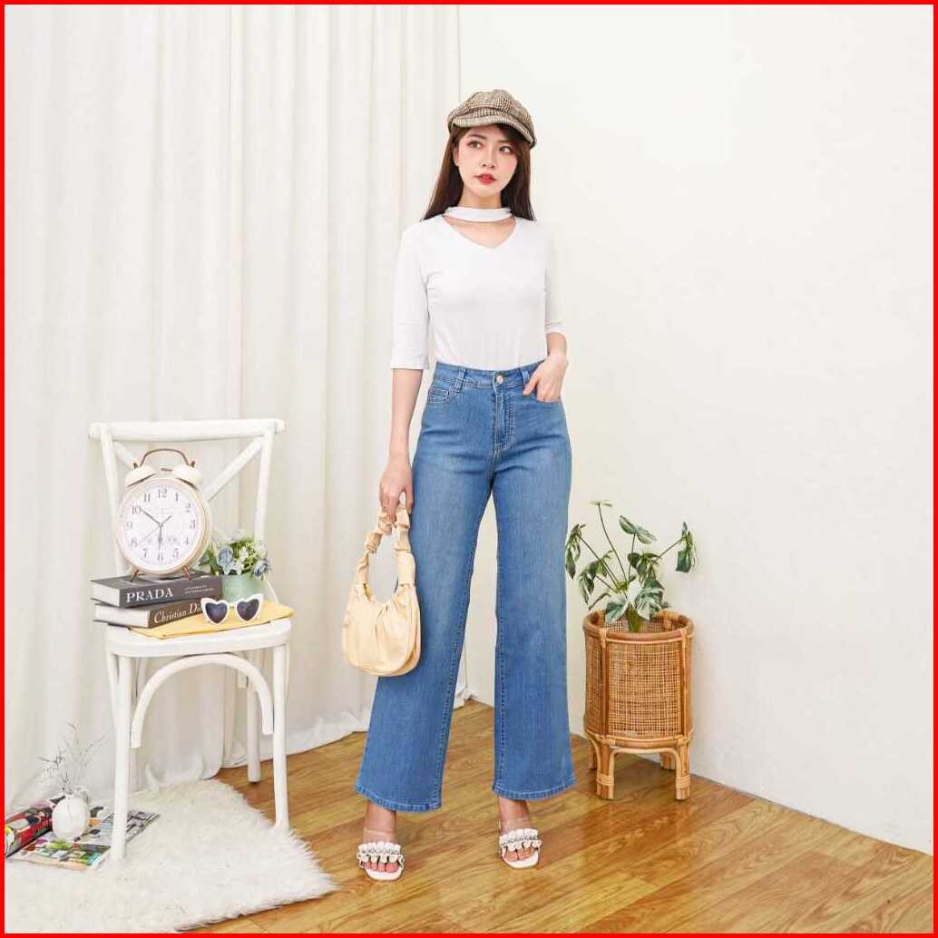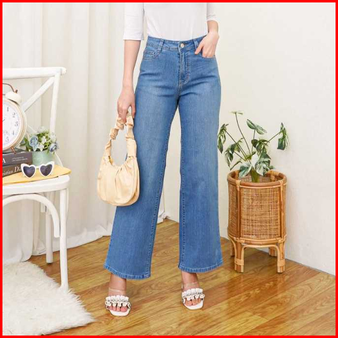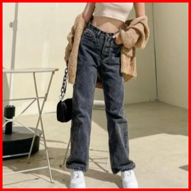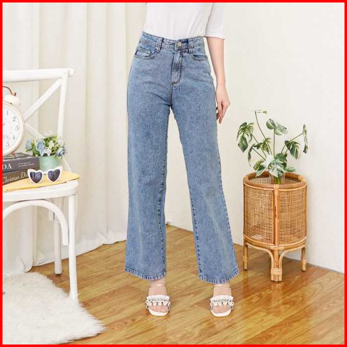 Rirada Store Celana Jeans Wanita Kekinian High Waist Jeans Loose Celana Jeans Panjang Kulot