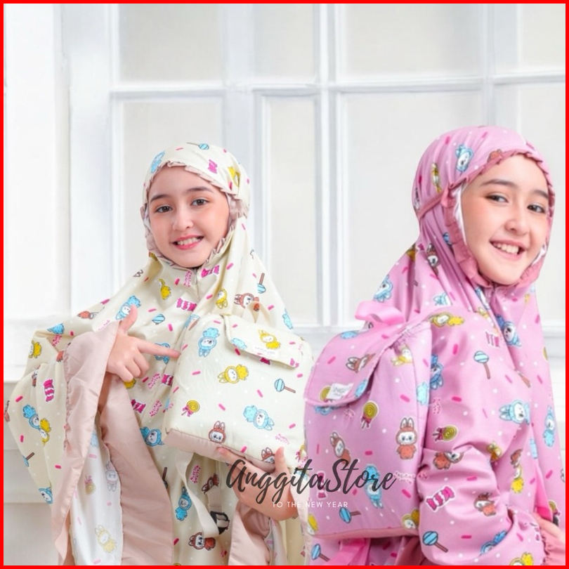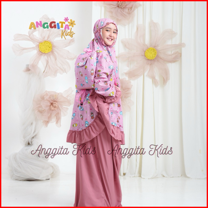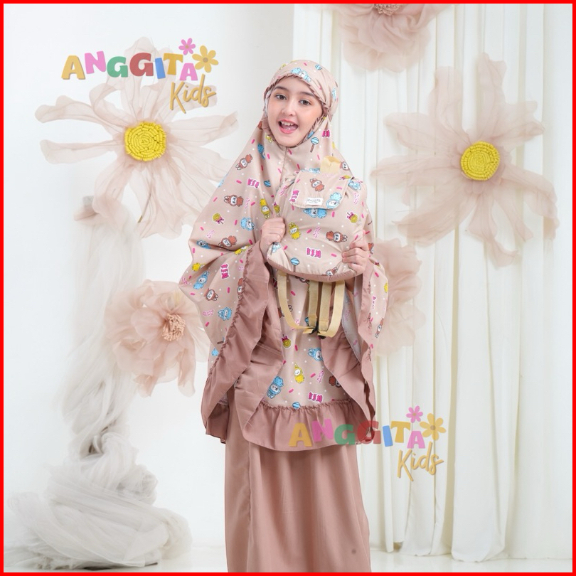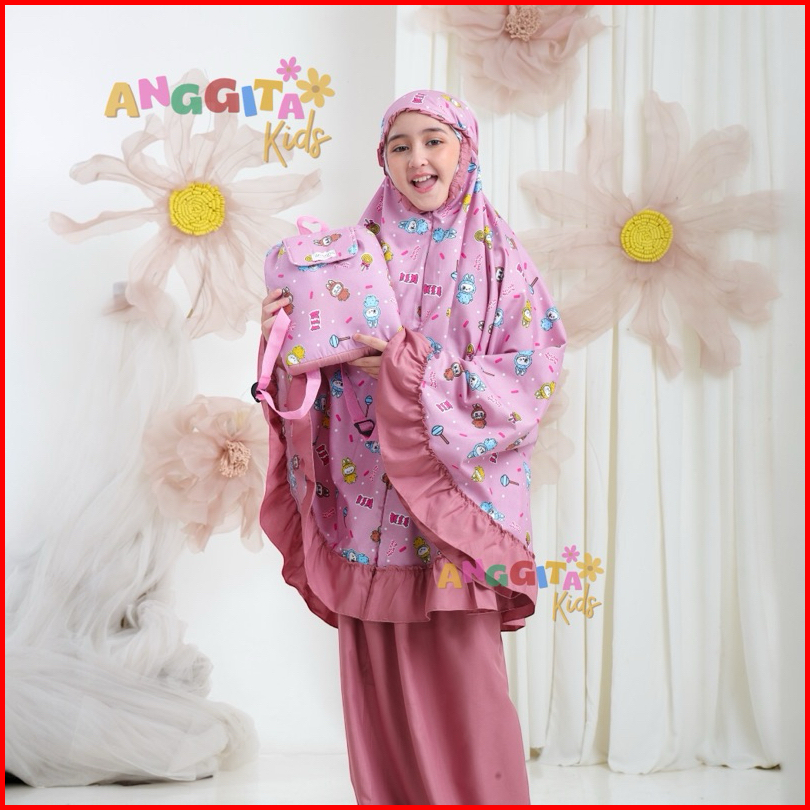 Anggita Store Mukena Anak Perempuan Tas Ransel Bahan Katun Mukena Anak Umur 2-12 Tahun